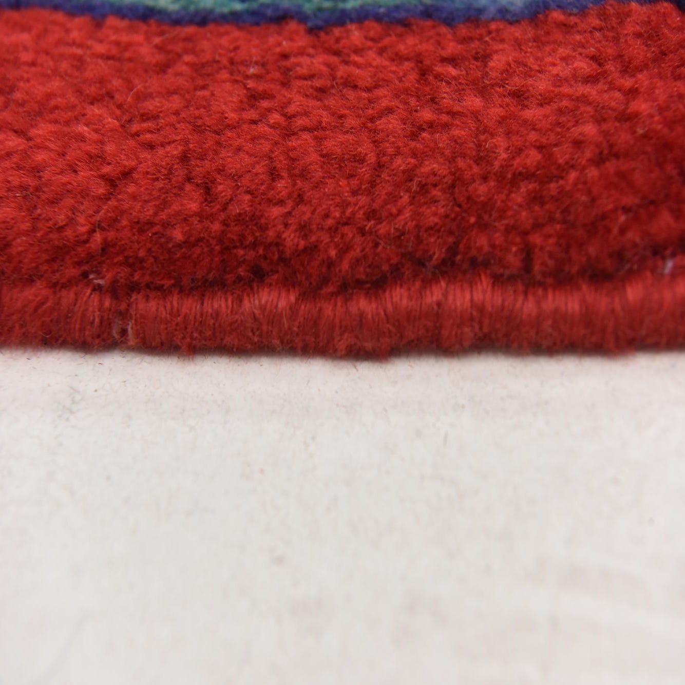 Primary color is Red. Colors in this rug include: Red, Beige, Blue, Brown, Green, Ivory, Navy Blue, Pink.