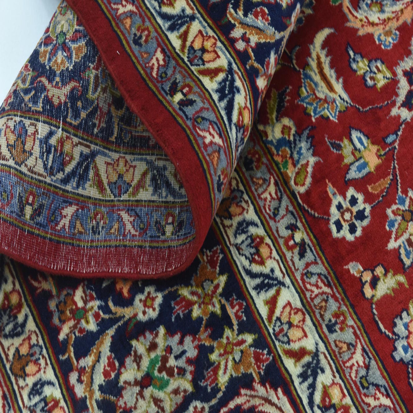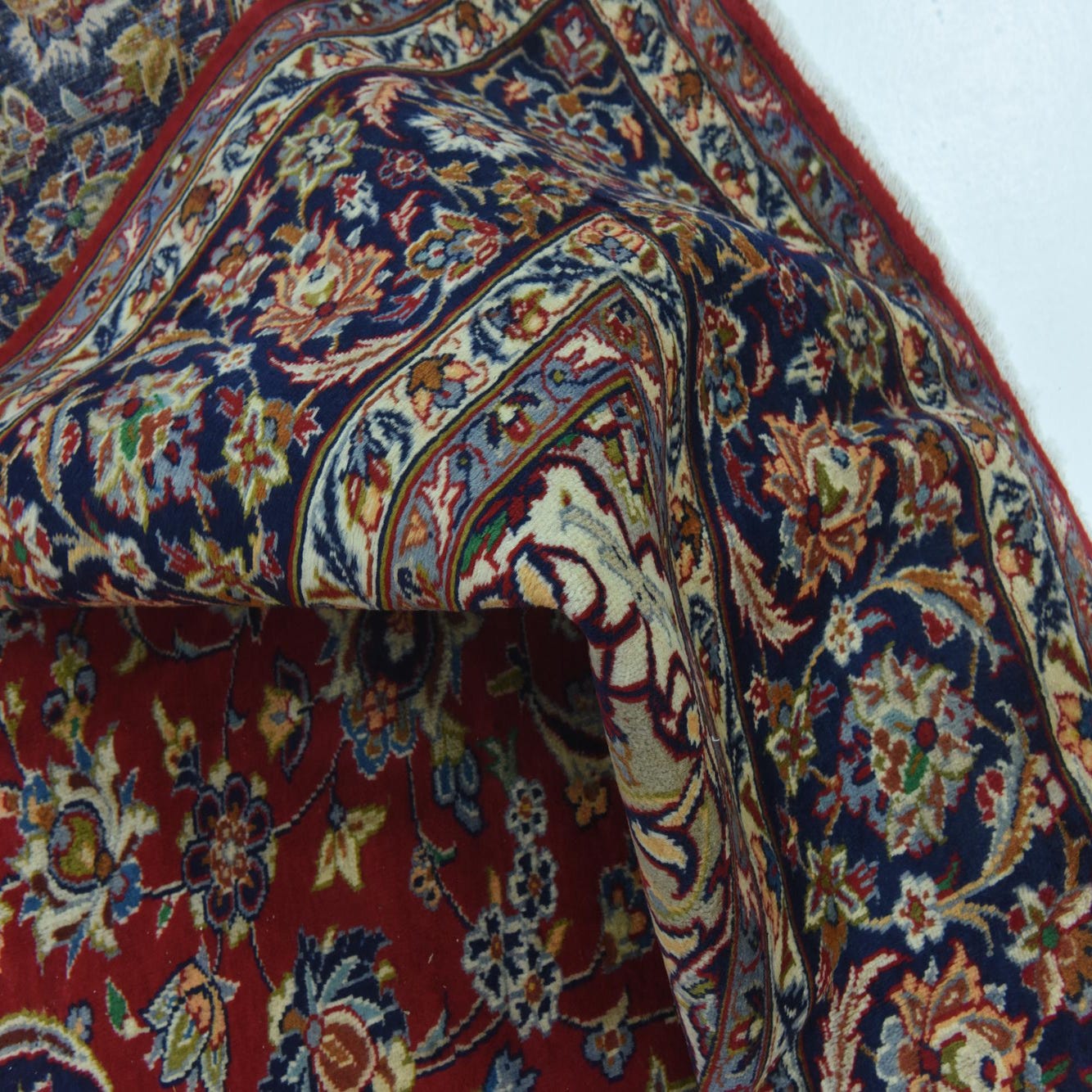 The Isfahan rug's sophistication and timeless design make it versatile for a range of decor scenarios. It would complement a traditional setting with its classic motifs or add a sense of grandeur to a more contemporary space that embraces bold colors and patterns. The rug's substantial size allows it to be a defining piece in a large living room, dining area, or any spacious interior where a touch of historical beauty would be appreciated.