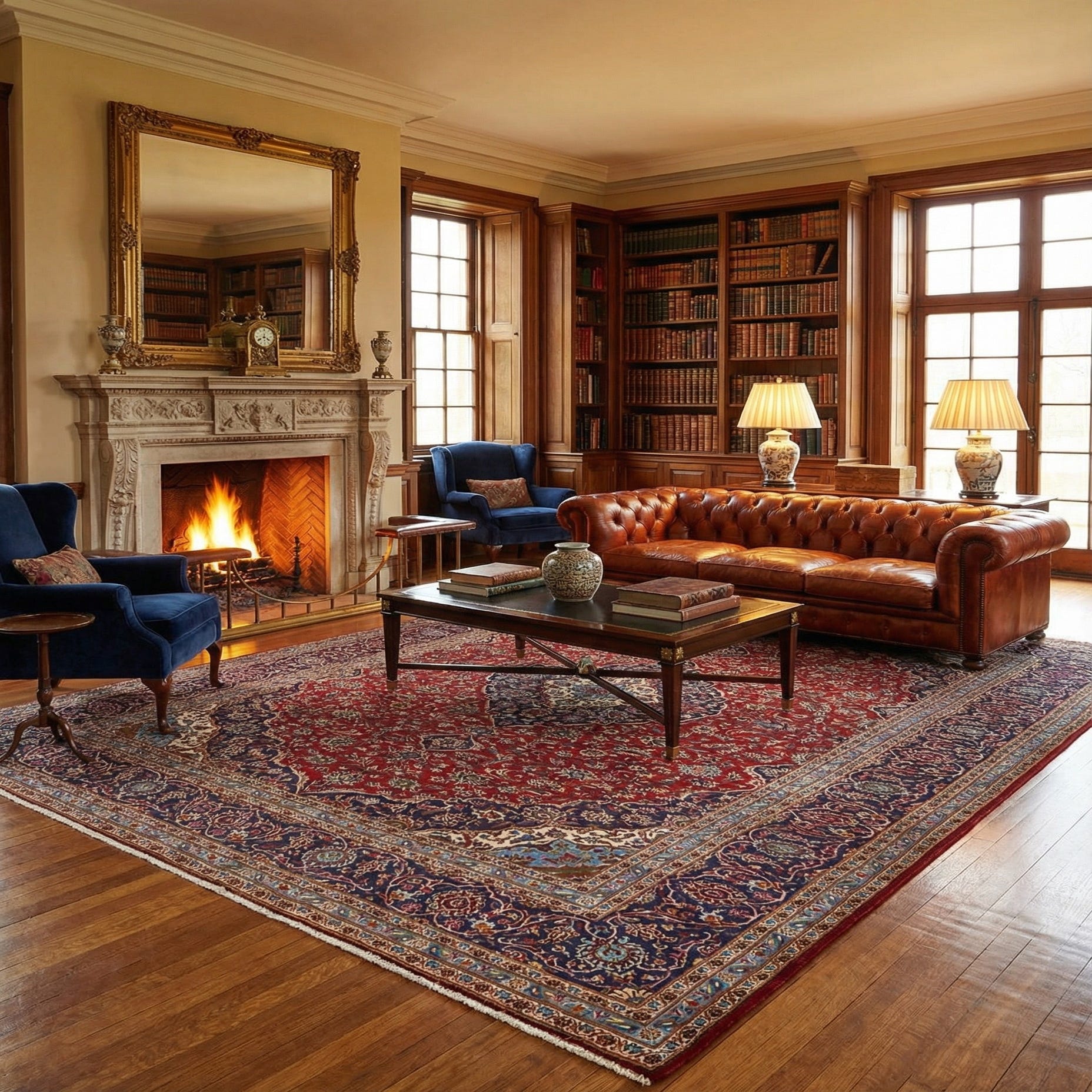Due to its timeless elegance and sturdy wool construction, this rug lends itself exceptionally well to traditional settings, libraries, offices, or rooms where a touch of historical influence is desired. Its sophisticated palette and mature pattern also make it a suitable choice for anchoring living spaces in a home with a classic or eclectic decor. The resilient nature of wool ensures this rug can handle high traffic areas, making it as functional as it is aesthetically appealing.