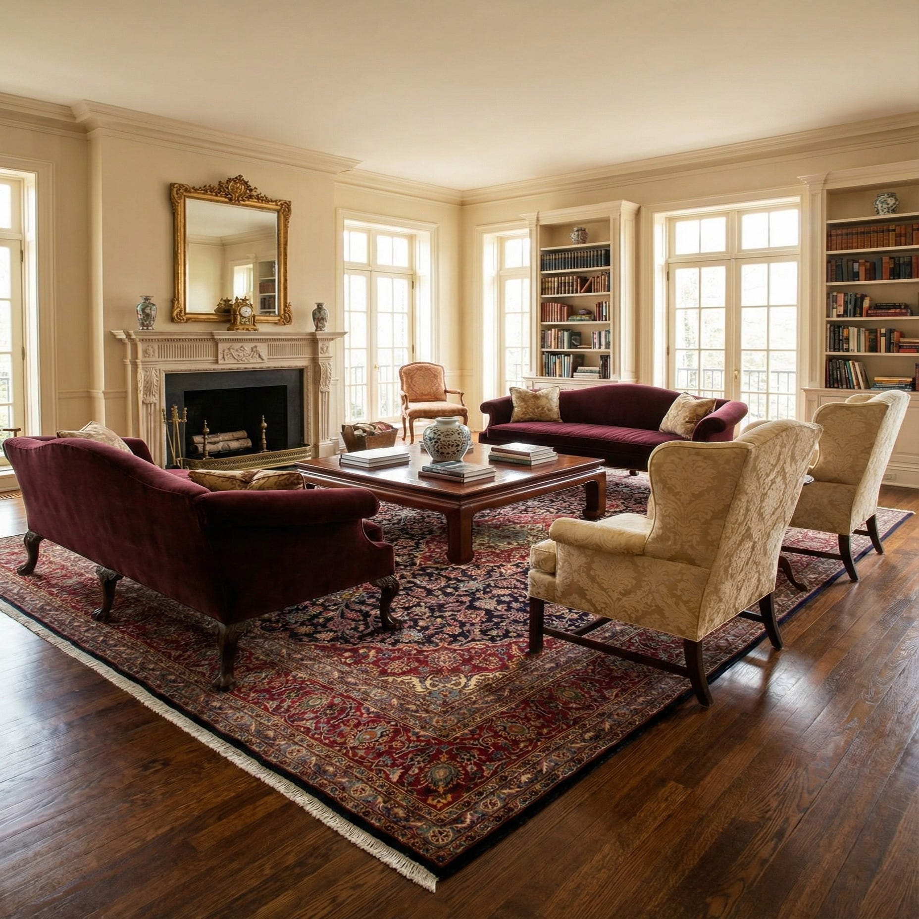 Due to its sizable dimensions and classic aesthetic, this rug is well suited for spacious living rooms, formal dining rooms, and grand entryways where it can serve as a focal point. The warm tones and elaborate design can harmoniously blend with traditional decor, complement antique furnishings, and add elegance to rooms with wood flooring. It will also enrich spaces with a mix of modern and classic pieces, providing a dynamic and timeless touch to eclectic interiors.