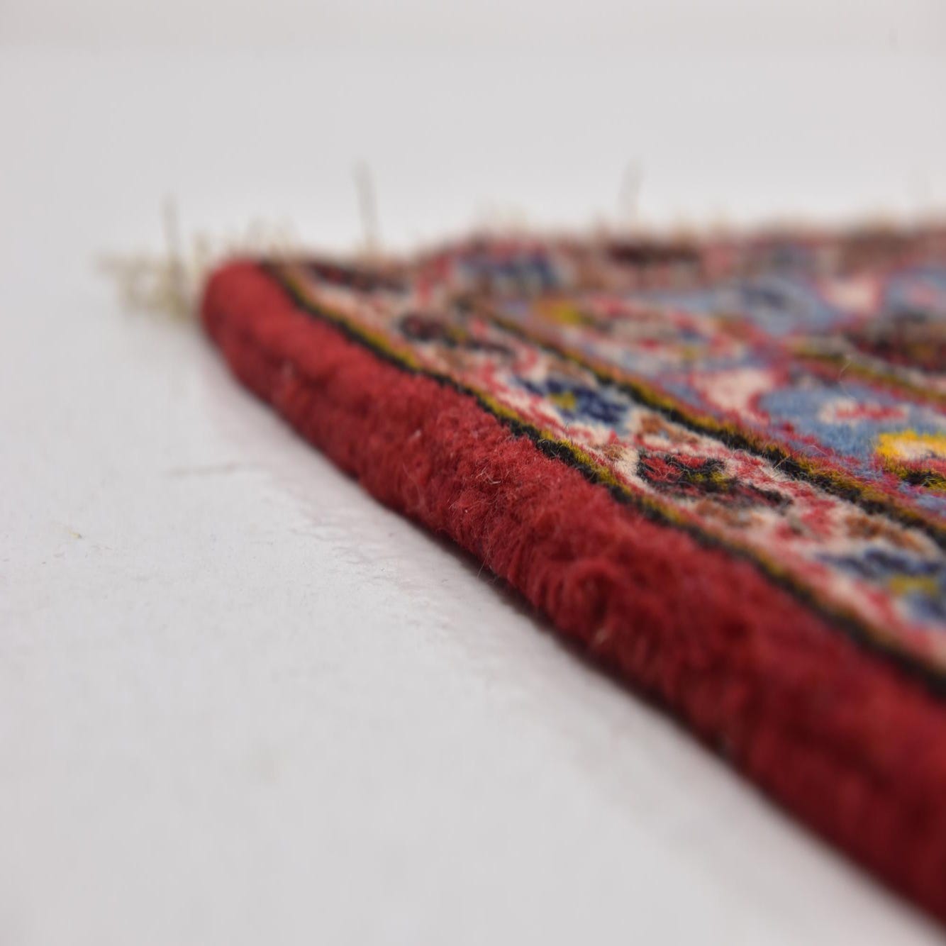 The Kashan collection presents a 10x13 hand-knotted rug crafted from 100% wool, offering both durability and a soft, comfortable texture underfoot. Its rich red background provides a warm and inviting base for the intricate pattern that adorns the surface. Traditional motifs in a harmonious palette that includes blue, green, navy blue, ivory, olive, orange, burgundy, and pink create a sophisticated and timeless design.
