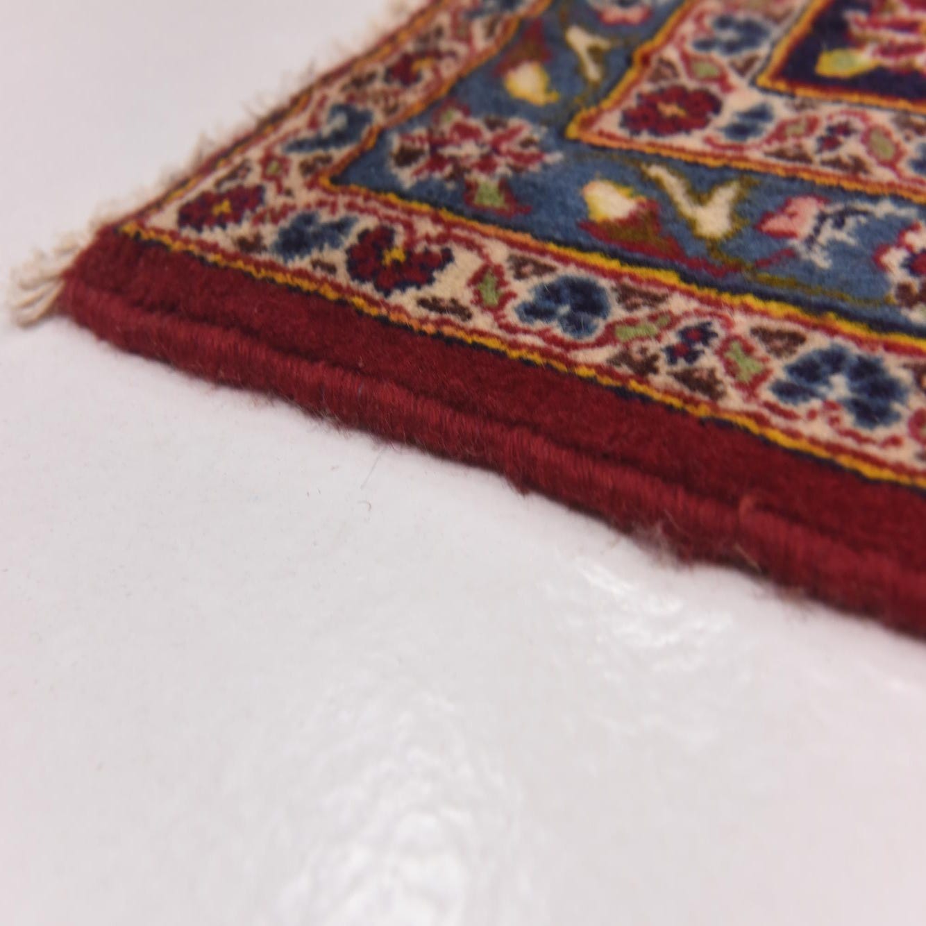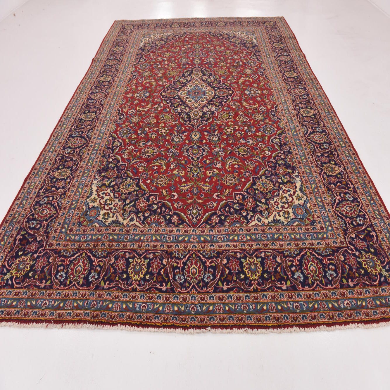 This rug is well-suited for placement in spaces that embrace traditional decor, from formal living rooms and dining areas to sophisticated office settings and libraries. Due to its robust color palette and ornate pattern, it pairs beautifully with rich wood tones, leather furnishings, and brass or gold accents. The Kashan rug can serve as a focal point in a room with muted walls, allowing the intricate design and vibrant colors to stand out.