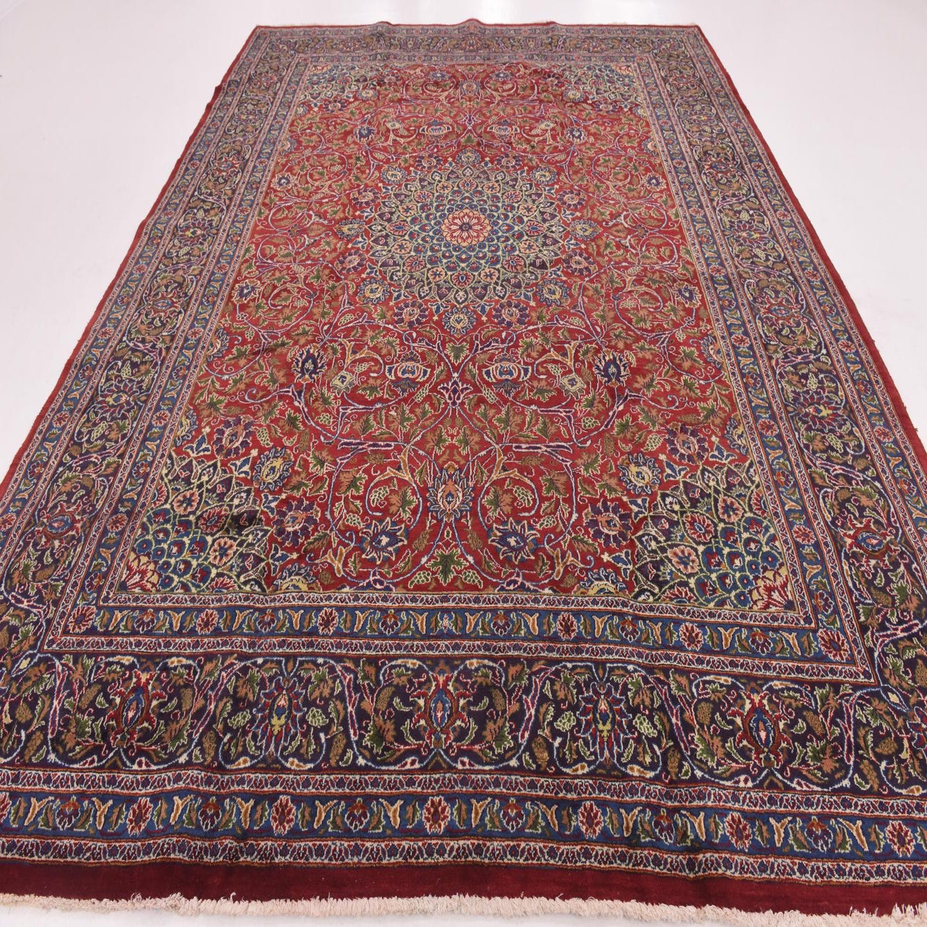 A 10x13 rectangular red Persian wool rug featuring an intricate botanical medallion pattern and traditional border.