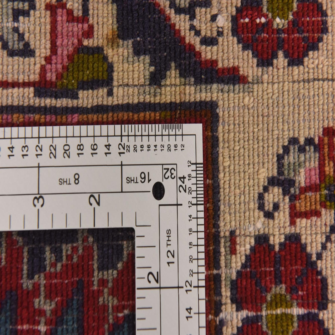 Primary color is Red. Colors in this rug include: Red, Beige, Blue, Green, Ivory, Navy Blue, Orange, Olive, Peach.
