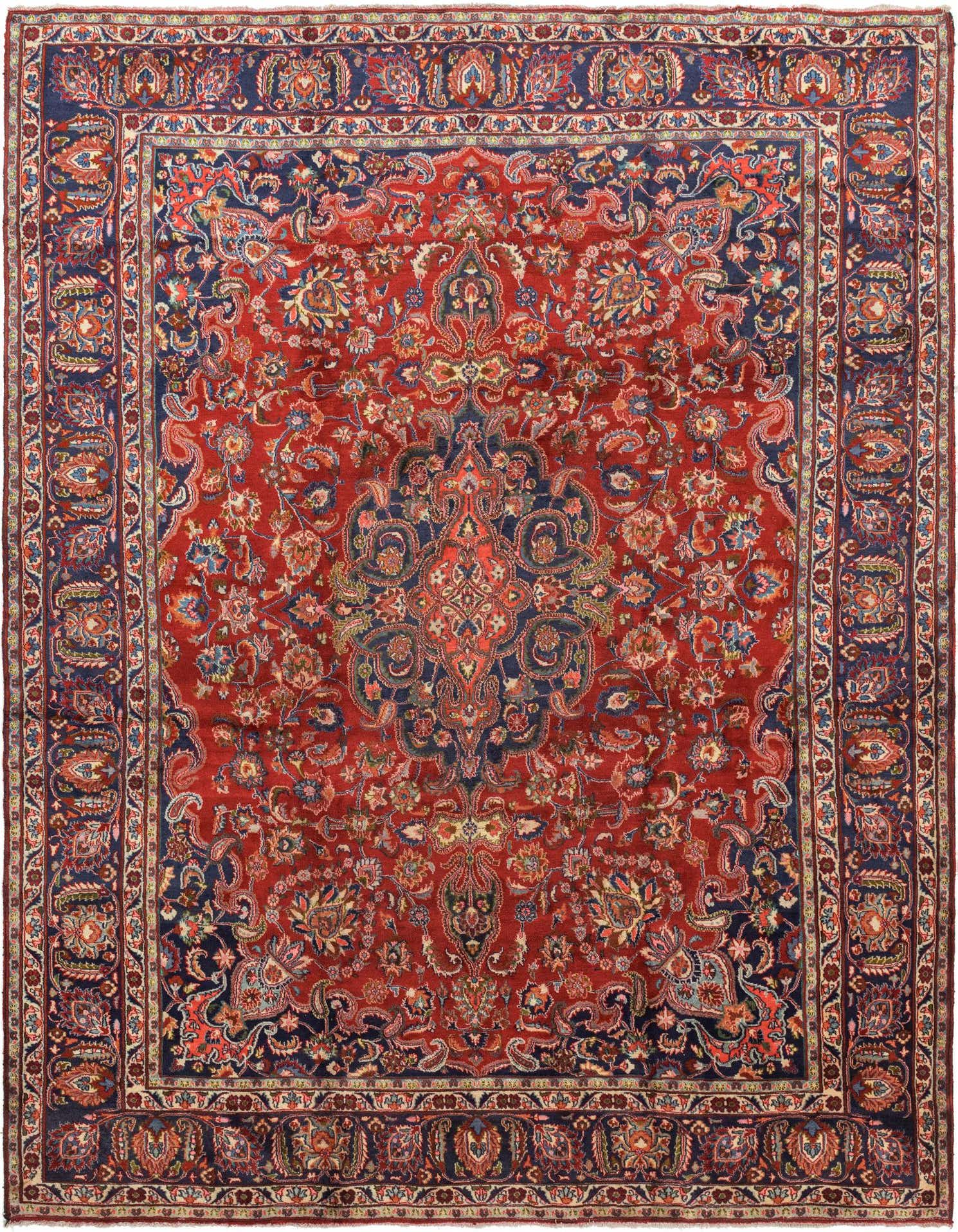 9' 9 x 13' Hand Knotted Mashad Persian Wool Rug