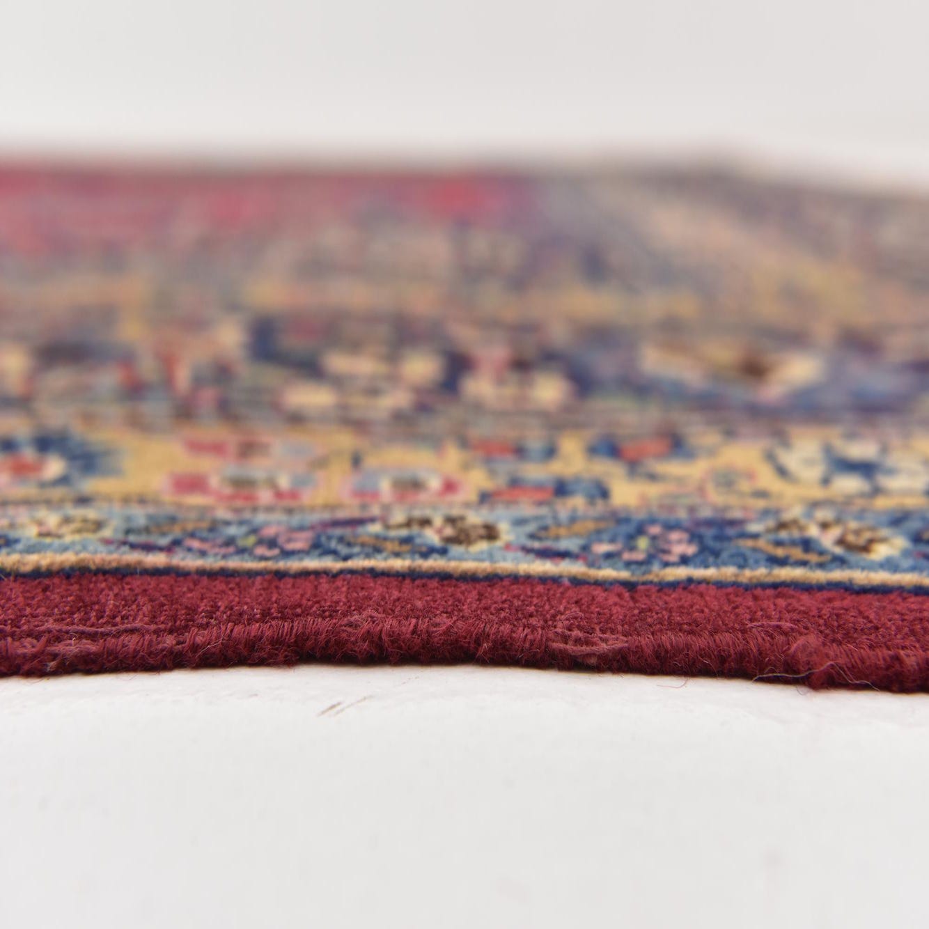 The Mashad collection presents a meticulously hand-knotted rug crafted from 100% wool, sized at a generous 10x13 feet to accommodate larger living, dining, or sleeping areas. Its red background anchors a traditional design palette with beige, blue, burgundy, green, navy blue, orange, and pink accents. The classic central medallion layout is surrounded by intricate floral and foliate motifs, well-defined in the border, offering a sense of symmetrical elegance and sophistication.