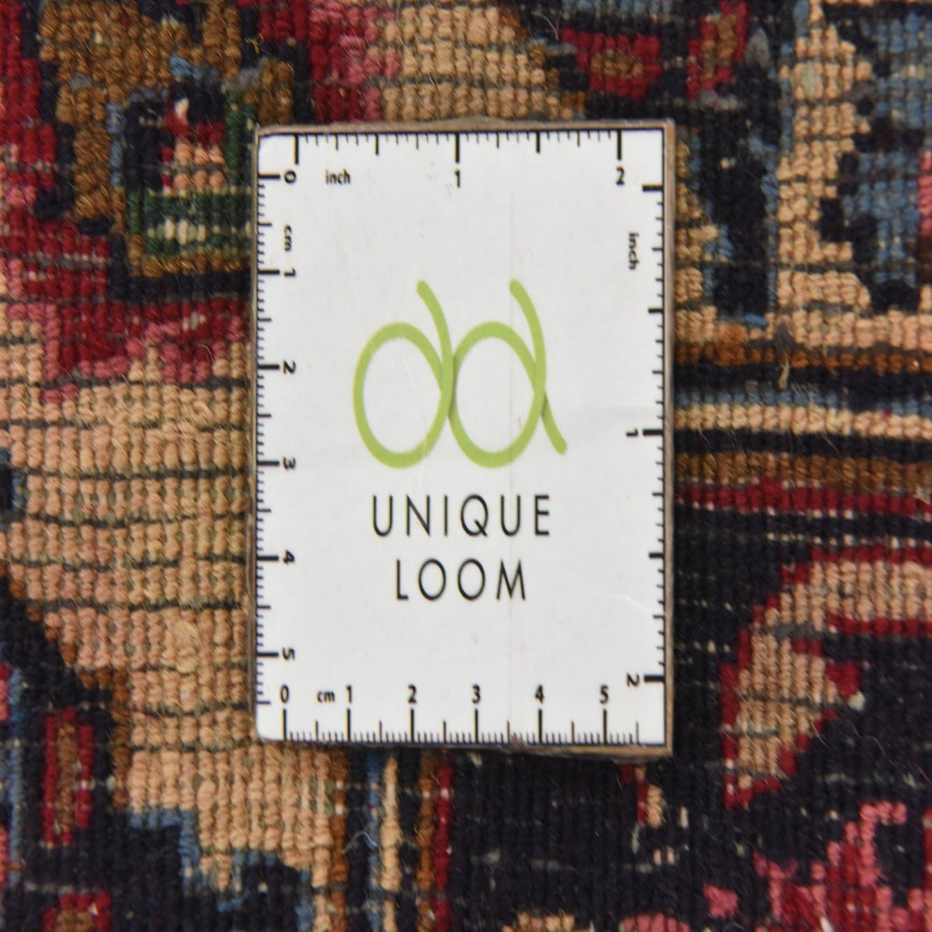 The Mashad collection presents a hand-knotted rug that is both time-honored and robust, crafted from 100% wool and sized at a room-defining 10x13. This rug features a deep red background that is emboldened with an intricate array of florals and arabesque motifs, able to anchor a room with its rich visual texture. The color palette is rich and versatile, including red, blue, green, ivory, light blue, navy blue, orange, and terracotta, giving it a vibrant yet harmoniously blended appearance that captures attention without overwhelming the senses.