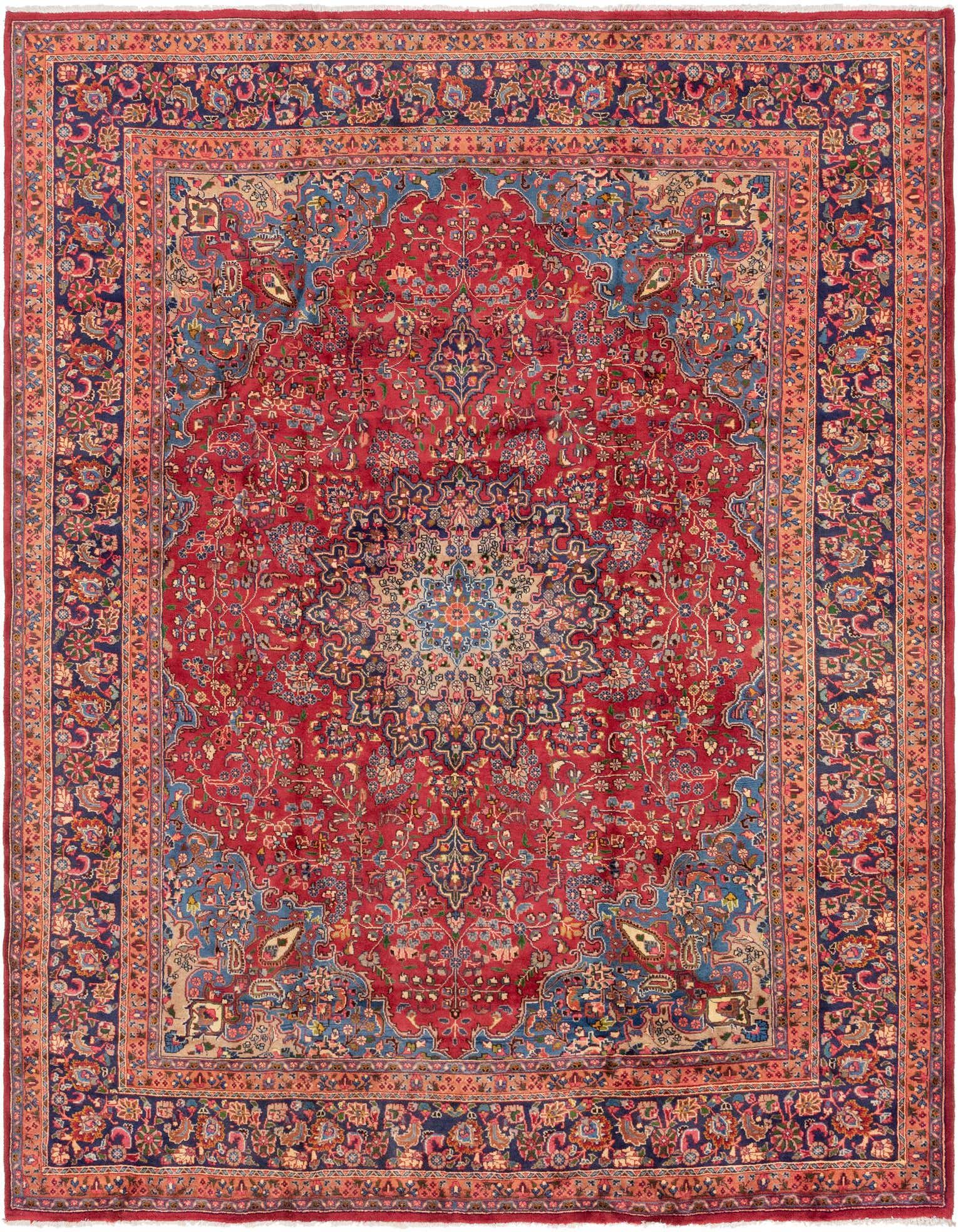 9' 8 x 12' 9 Hand Knotted Mashad Persian Wool Rug