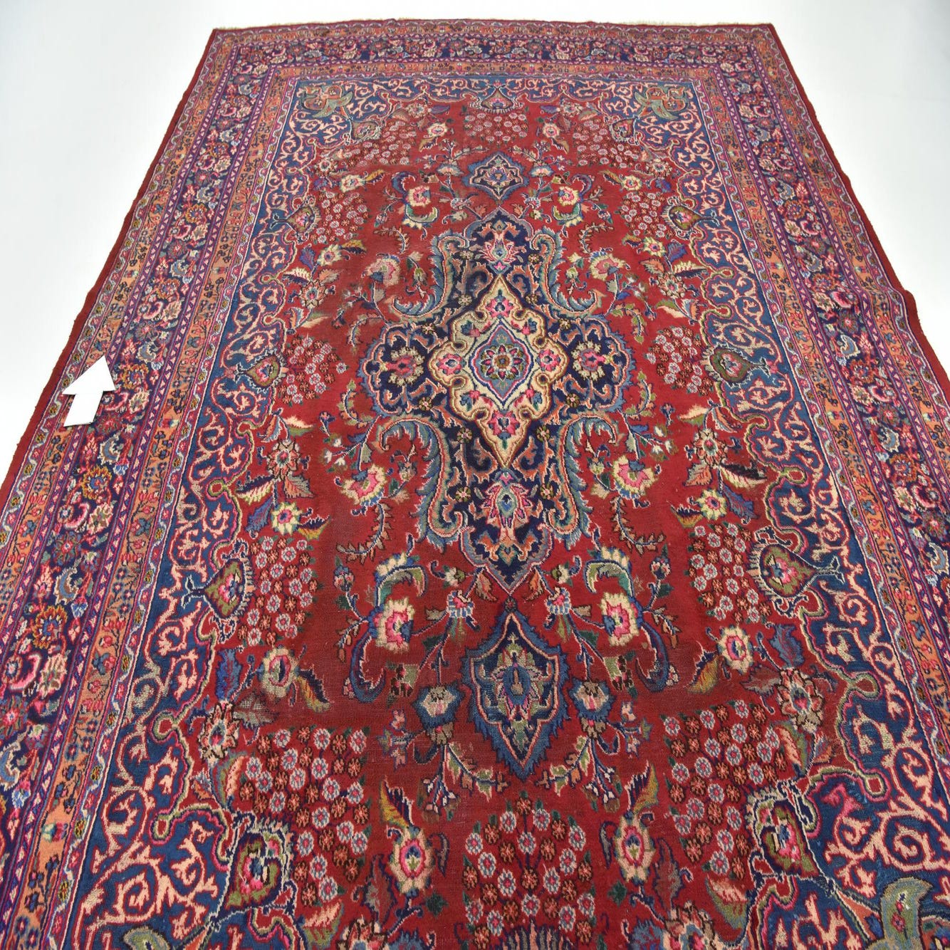 The Mashad rug has the versatility to enhance traditional interiors with its rich history and complex patterns but could also juxtapose beautifully against more modern or minimalistic decors, where it would inject warmth and textural contrast. This piece would serve as the grounding element in a grand living room, stately dining area, large halls, or an upscale office space. The rug's robust composition and visual depth make it a fitting choice for those looking to introduce a sense of history and sophistication into their living environment.