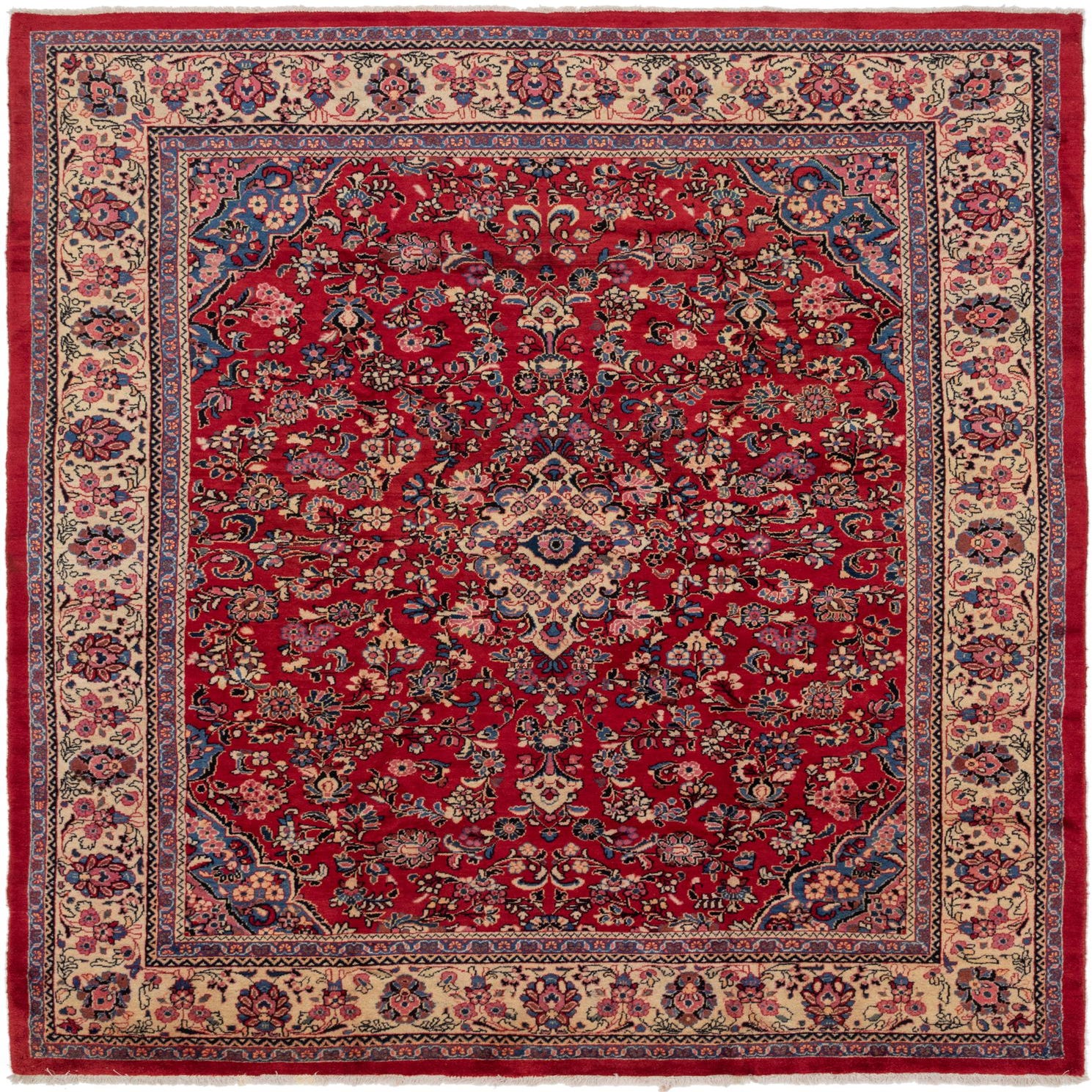 Primary color is Red. Colors in this rug include: Red, Black, Blue, Ivory, Light Blue, Navy Blue, Olive, Peach, Salmon, Brown.