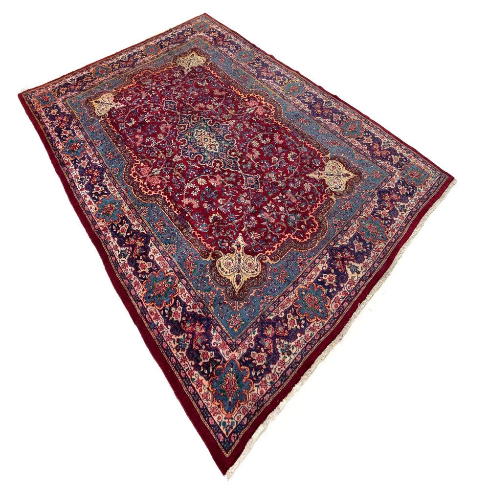 With its dense, soft texture, this wool rug promises both durability and comfort underfoot. The vibrant color scheme and classic styling make it an excellent choice for spaces that aim to showcase timeless beauty and an appreciation for artisanal quality. Suitable for a range of interior designs, this rug would particularly shine in traditional, classic, or formal settings, as well as in spaces looking for a statement piece to add warmth and regal elegance. It can serve as a stunning focal point in a living room, dining area, or large entryway, harmonizing with both dark and light furnishings.