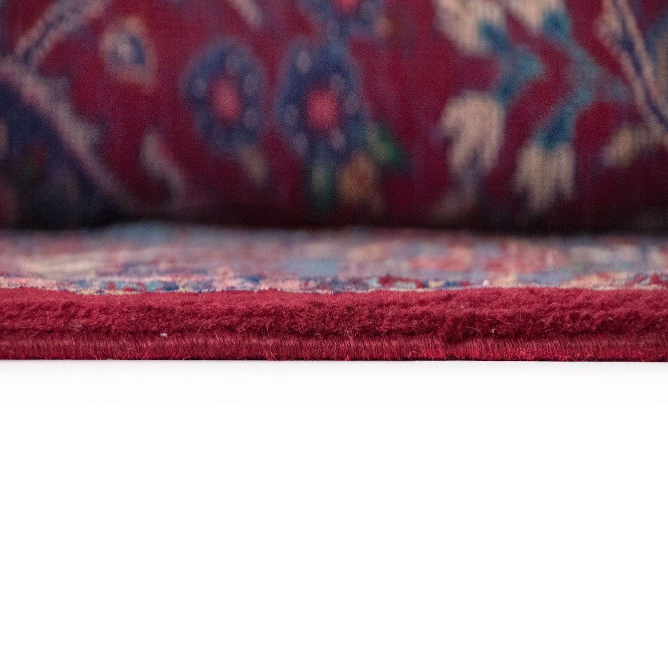 The Shaban collection presents a sophisticated 10x13 hand-knotted rug crafted from 100% wool. This piece boasts a rich red background color, beautifully complemented by a variety of multicolor accents that give depth and intricacy to its elaborate pattern. The rug's design features traditional motifs, including a central medallion and ornate border, each meticulously detailed to provide a sense of luxury and craftsmanship.