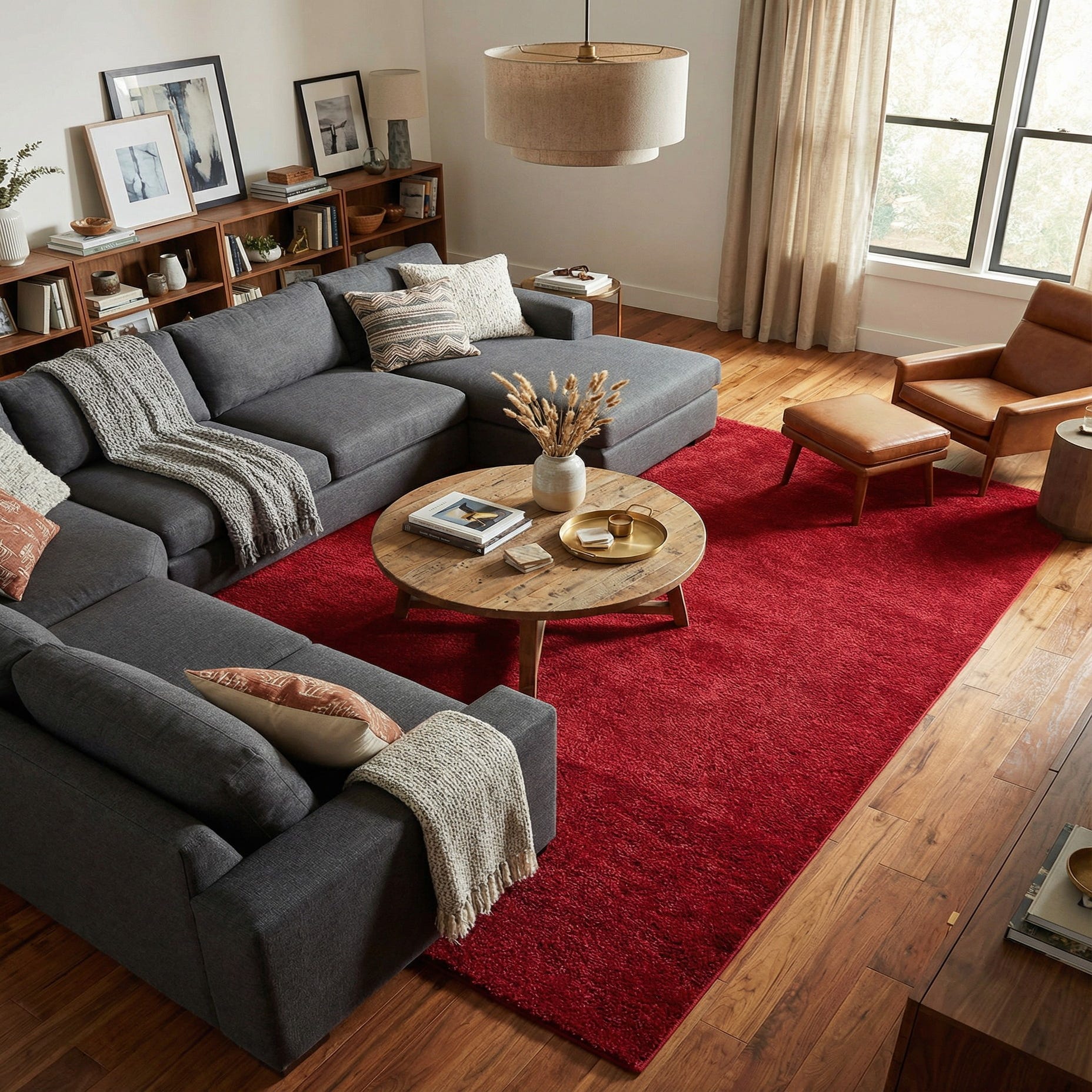 This rug works well as an anchor in a contemporary living room beneath a sectional, a bedroom layer to add warmth underfoot, or a home office where a bold field of color brings focused energy. Pair it with warm wood finishes and neutral upholstery for a balanced look, or combine with brass accents and charcoal grays for a modern, graphic contrast.