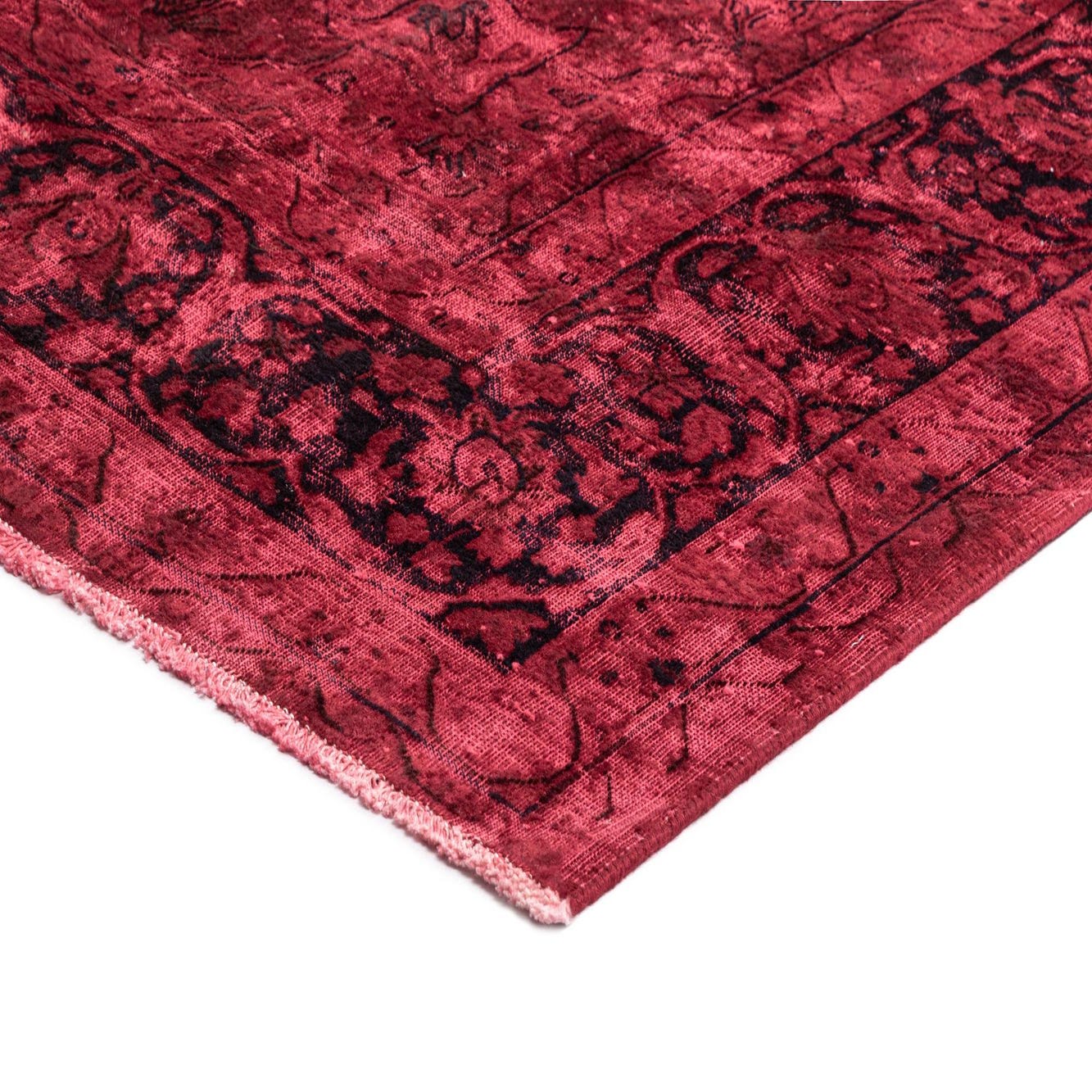 Primary color is Red. Colors in this rug include: Red, Red, Black.