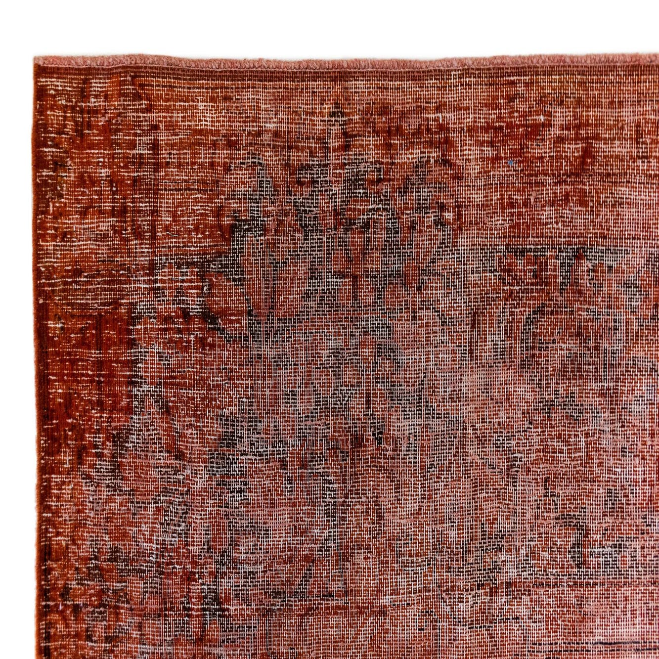 A 10x13 rectangular red Persian rug with a faded, distressed pattern, suitable for a living room or dining room.