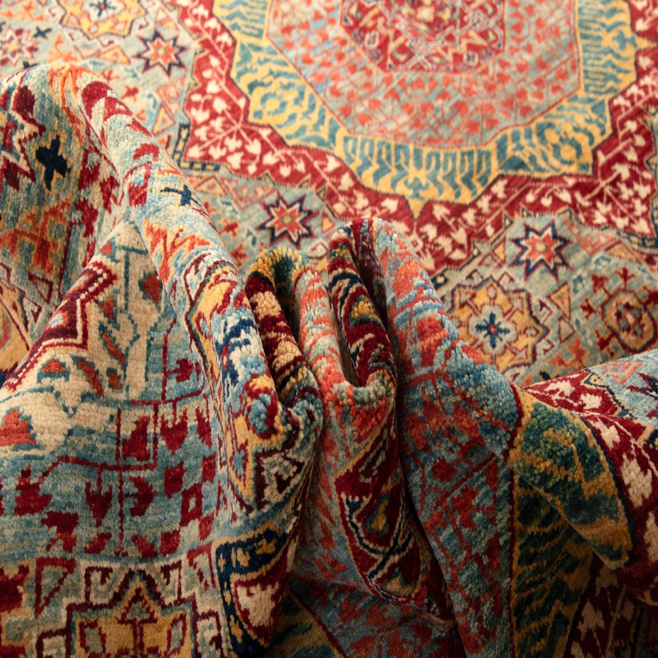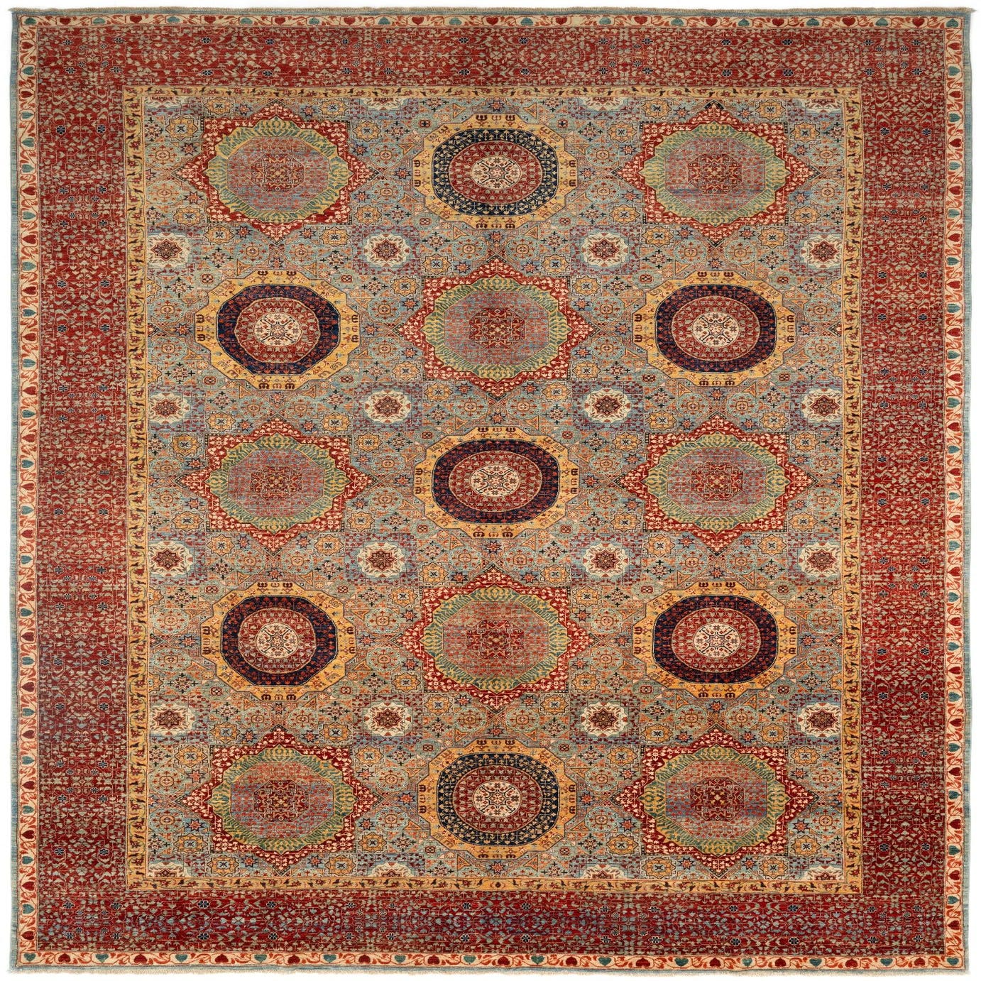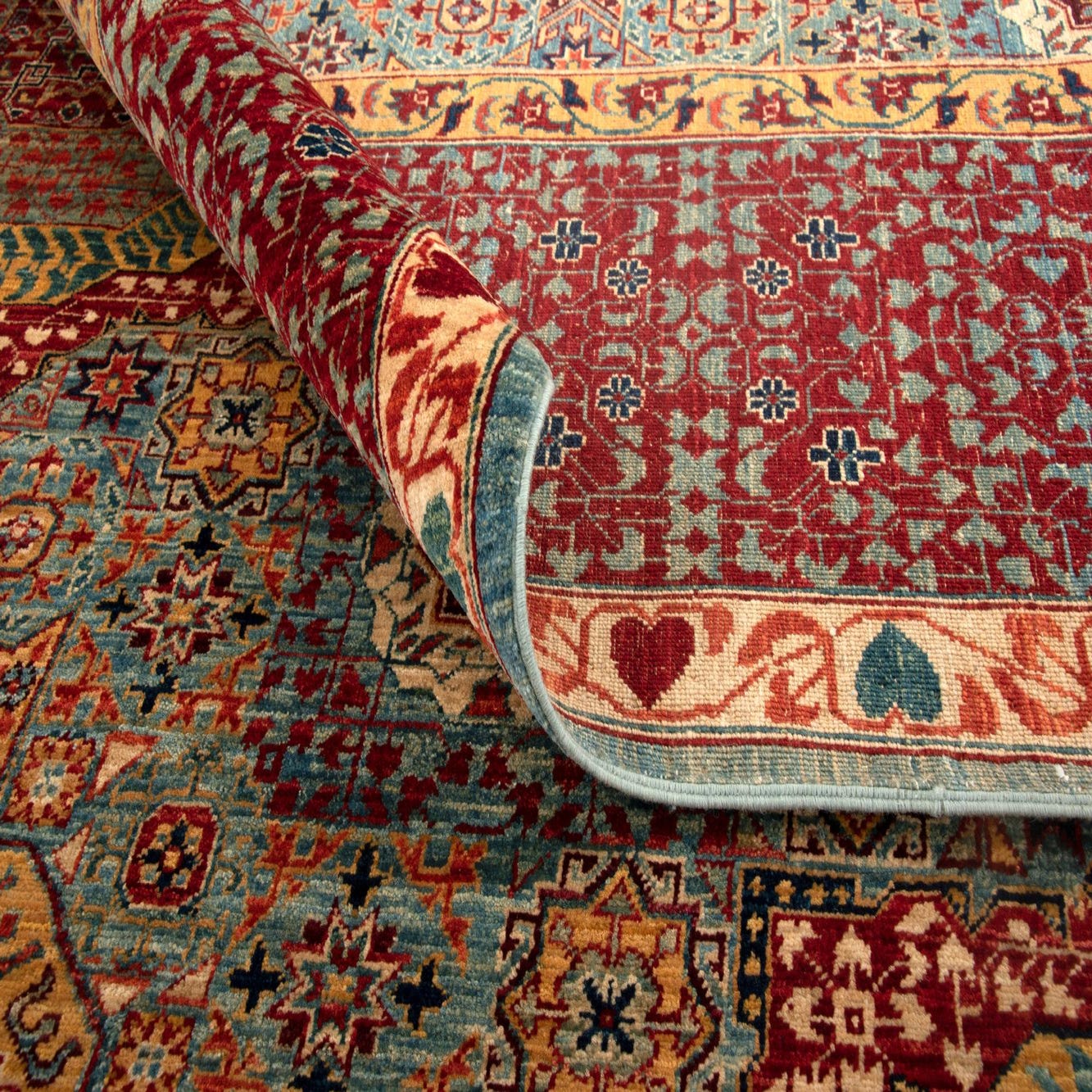 Primary color is Red. Colors in this rug include: Red, Language: en
