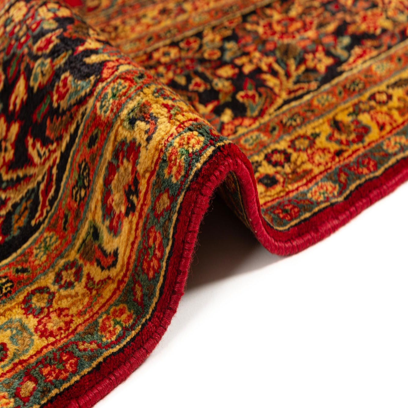 With its classic design and rich color palette, this rug fits seamlessly into interiors that favor traditional, Victorian, or classic European styles. It could also serve as a dramatic statement piece in a more modern setting that employs clean lines and minimalist furniture, creating a striking contrast and a splash of color to enliven the space.
