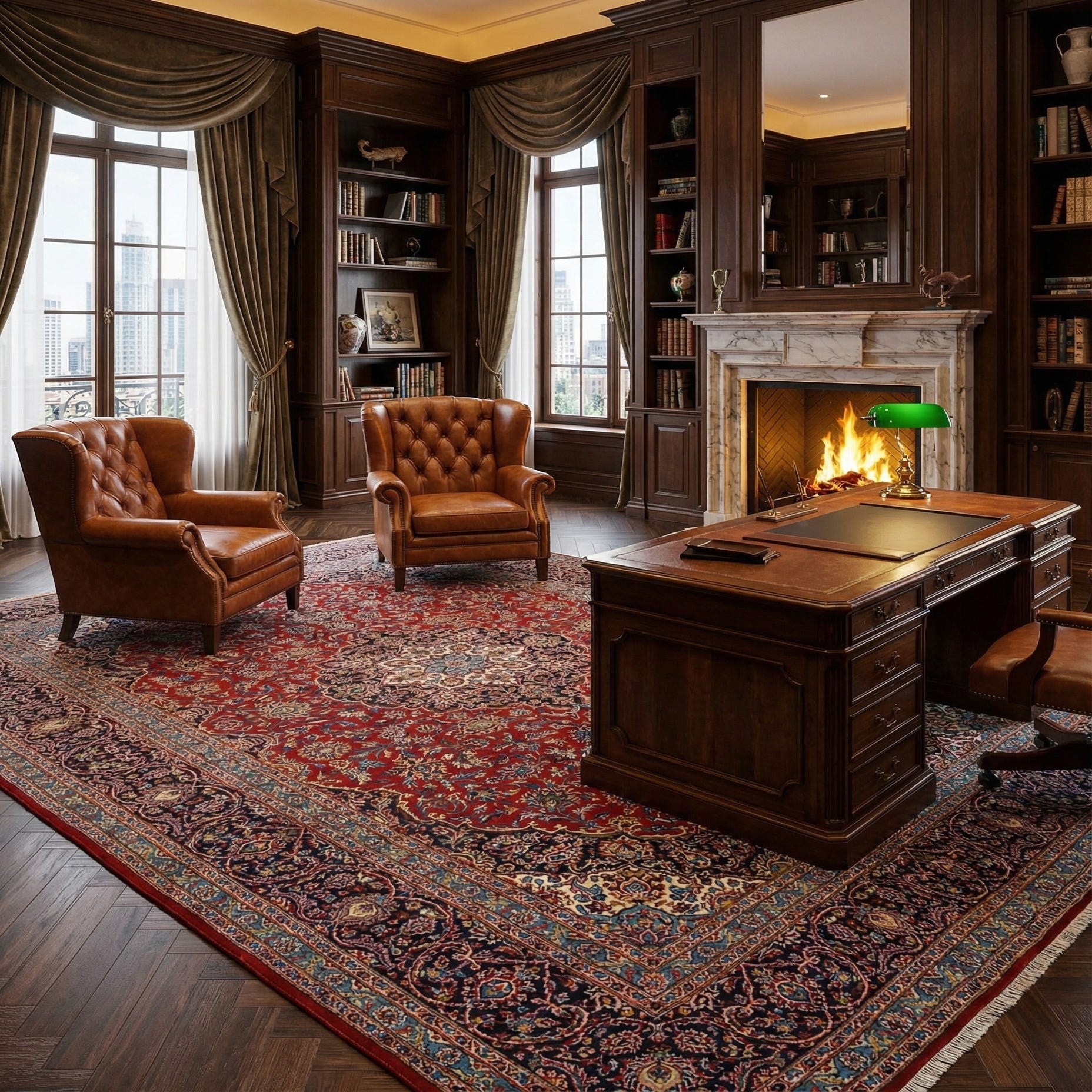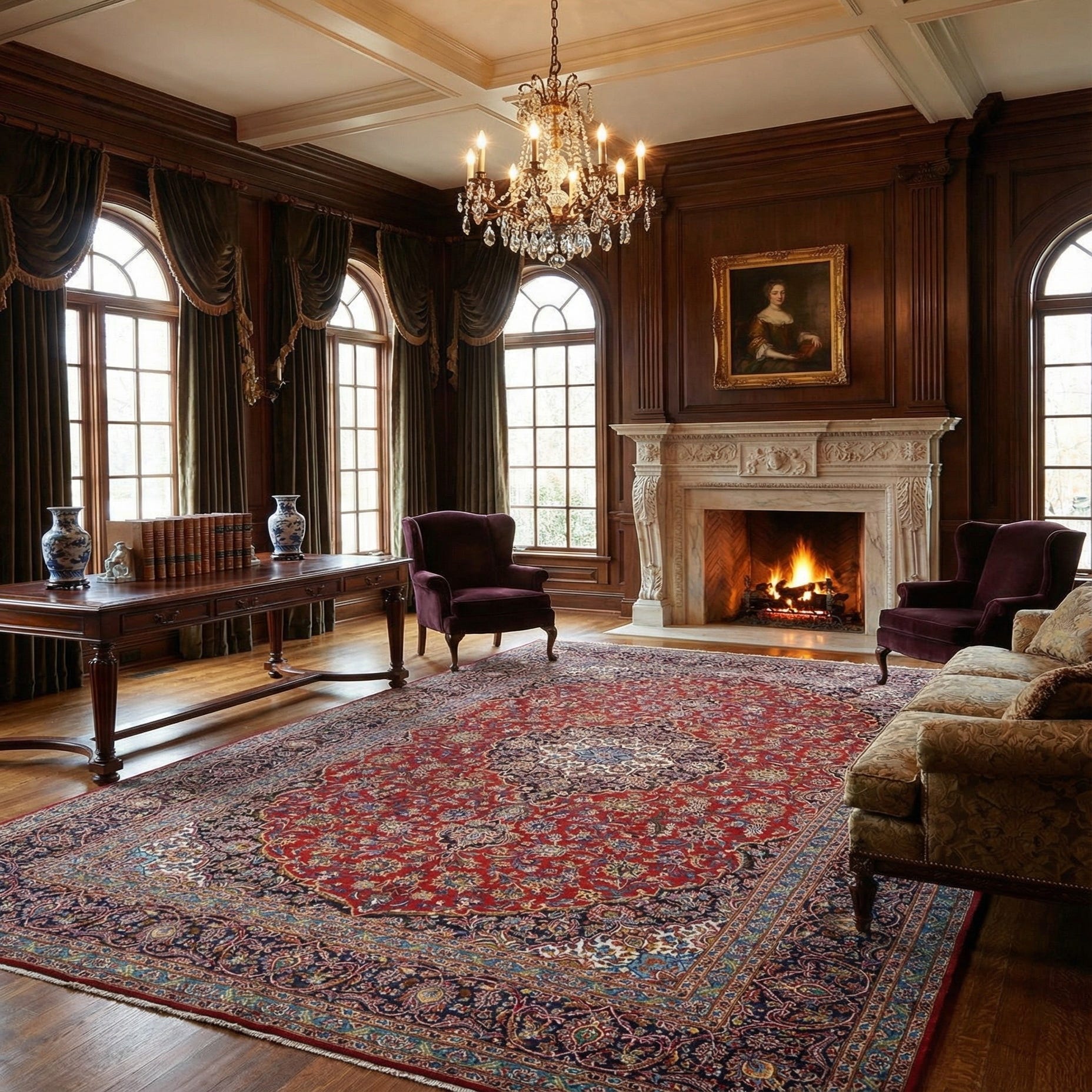 This rug's classic styling and deep, vibrant color palette make it an ideal choice for spaces seeking an anchor piece with a timeless aesthetic. It is well-suited for formal living rooms, dining rooms, or any area that invites a touch of elegance. The rich hues and elaborate patterns pair exceptionally well with traditional, Victorian, and classic interiors, yet it can also serve as a dramatic focal point in more transitional spaces that blend both modern and antique elements.
