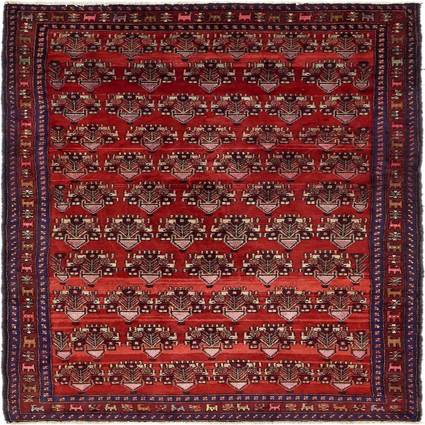 Primary color is Red. Colors in this rug include: Red, Beige, Blue, Burgundy, Green, Ivory, Navy Blue, Olive, Peach.