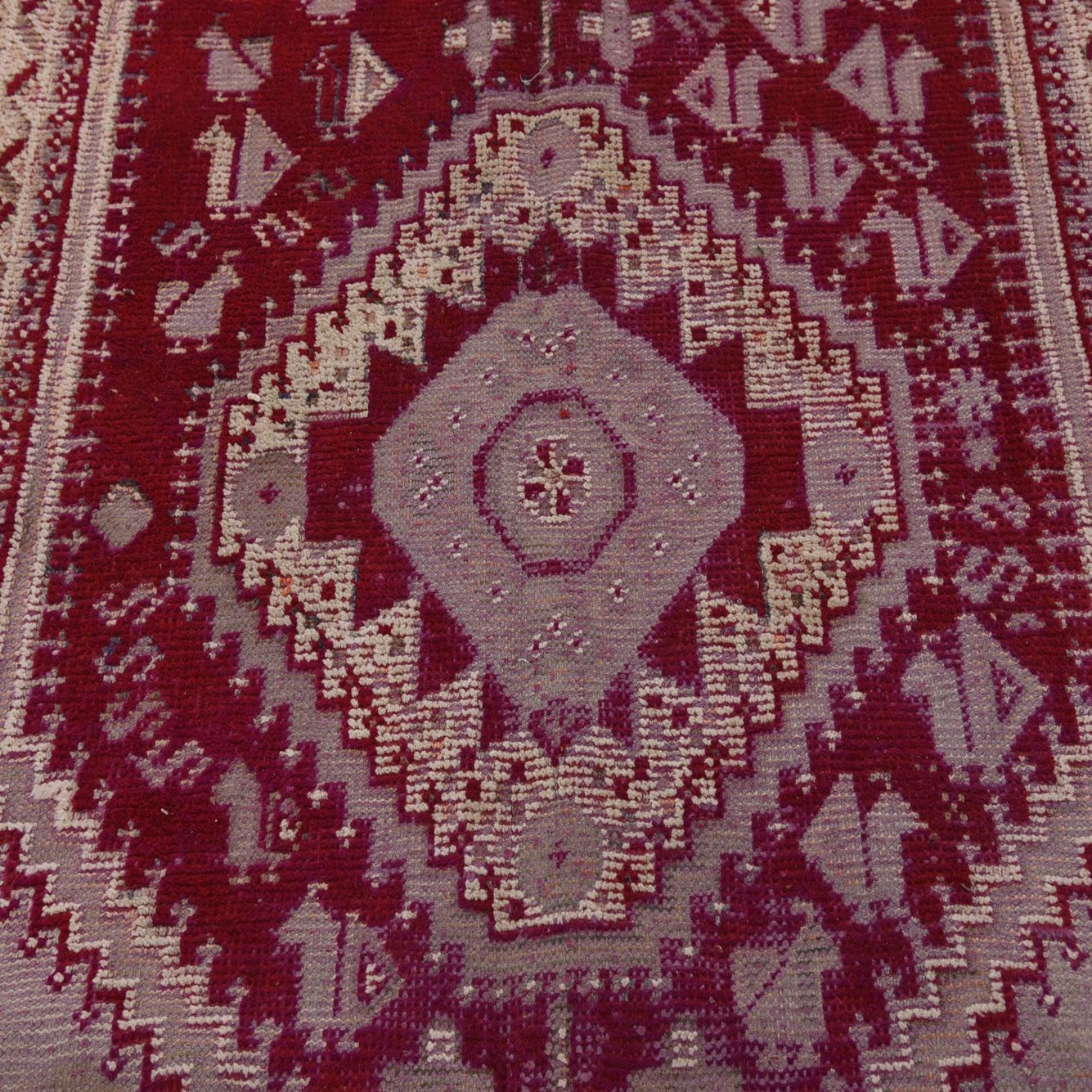 Primary color is Red. Colors in this rug include: Red, Beige, Ivory, Gray.
