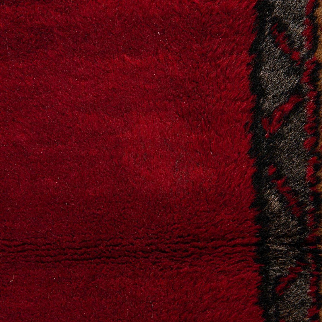 Primary color is Red. Colors in this rug include: Red, Black, Blue, Brown, Gold, Orange.