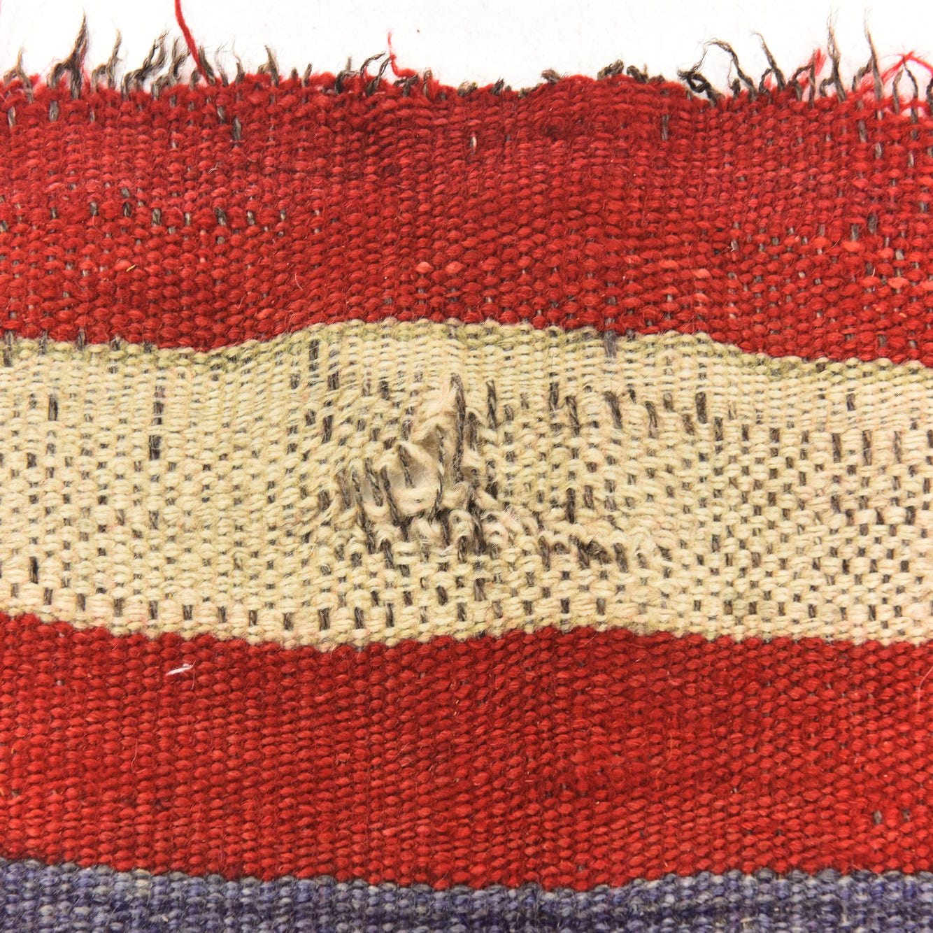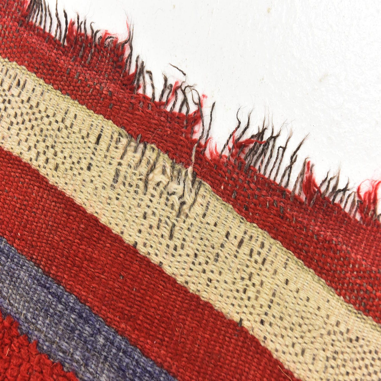 Primary color is Red. Colors in this rug include: Red, Black, Blue, Ivory, Orange, Brown.
