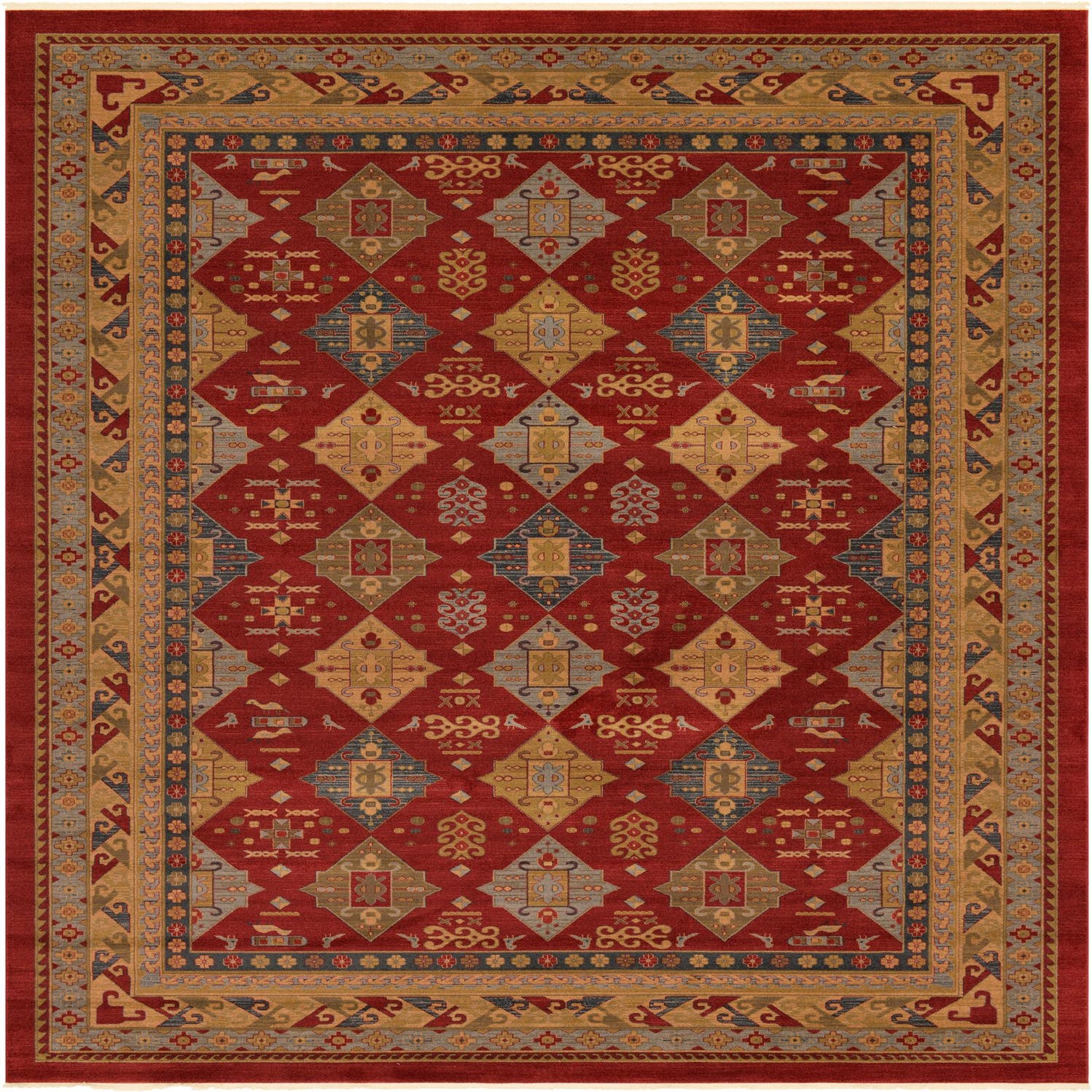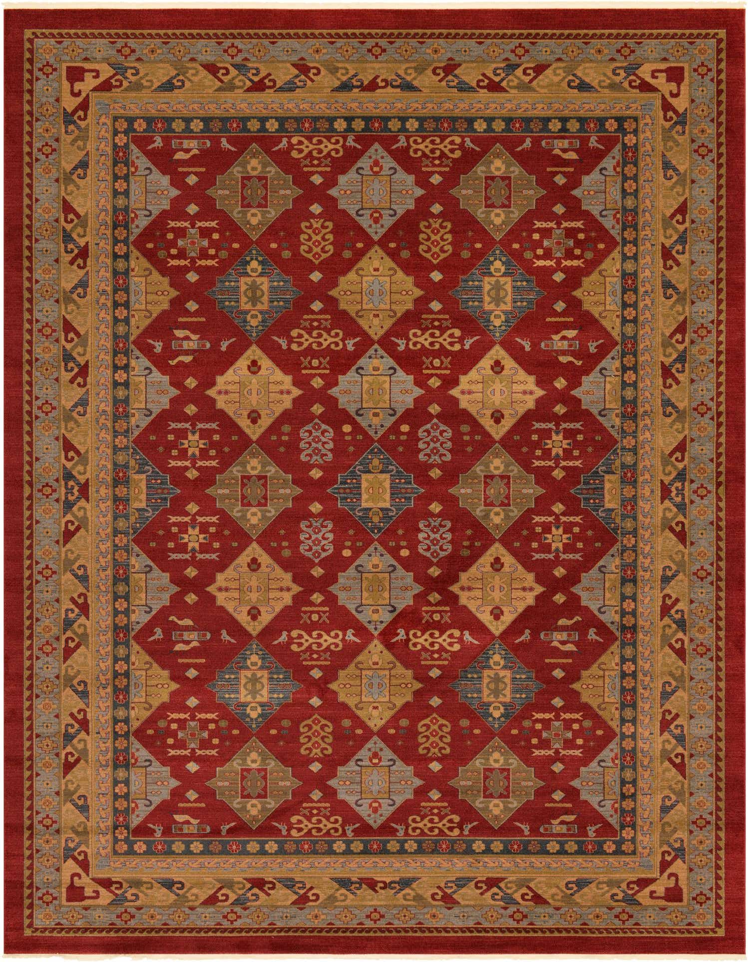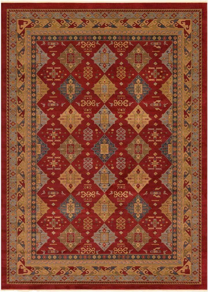 Primary color is Red. Colors in this rug include: Red, Beige, Blue, Navy Blue, Light Green, Brown.