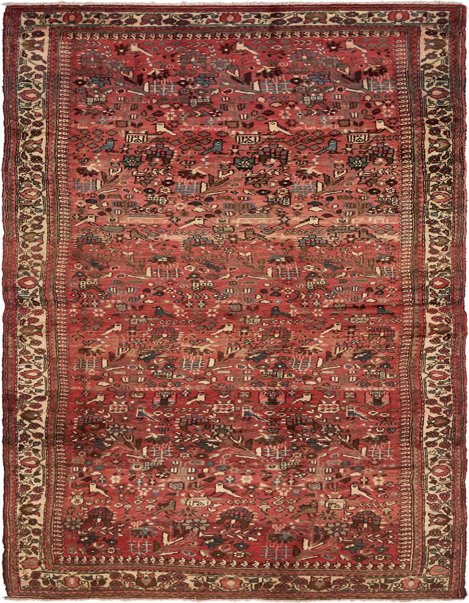 Primary color is Red. Colors in this rug include: Red, Ivory, Navy Blue, Blue, Green, Peach.
