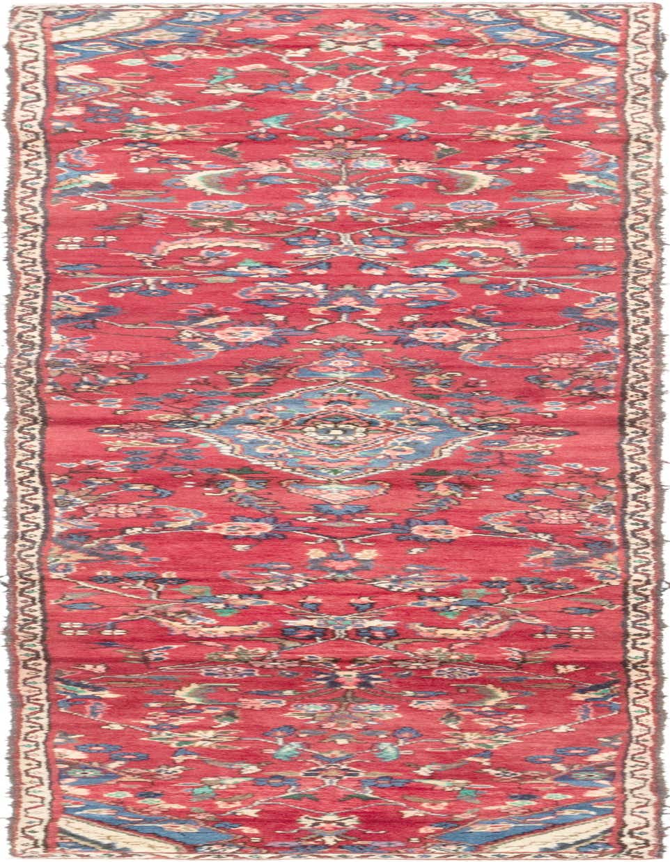 Primary color is Red. Colors in this rug include: Red, Beige, Black, Blue, Brown, Green, Ivory, Navy Blue, Olive, Orange, Pink.