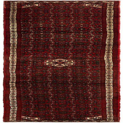 Primary color is Red. Colors in this rug include: Red, Red, Cream, Olive, Pink, Black.