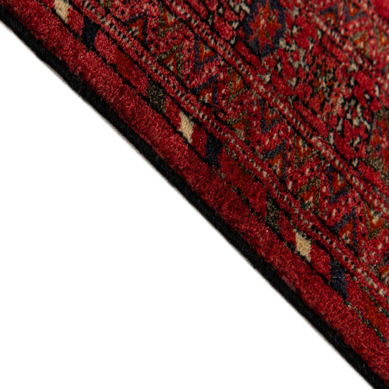A 2x3 rectangular red tribal wool rug with intricate patterns and fringe, ideal for an entryway.