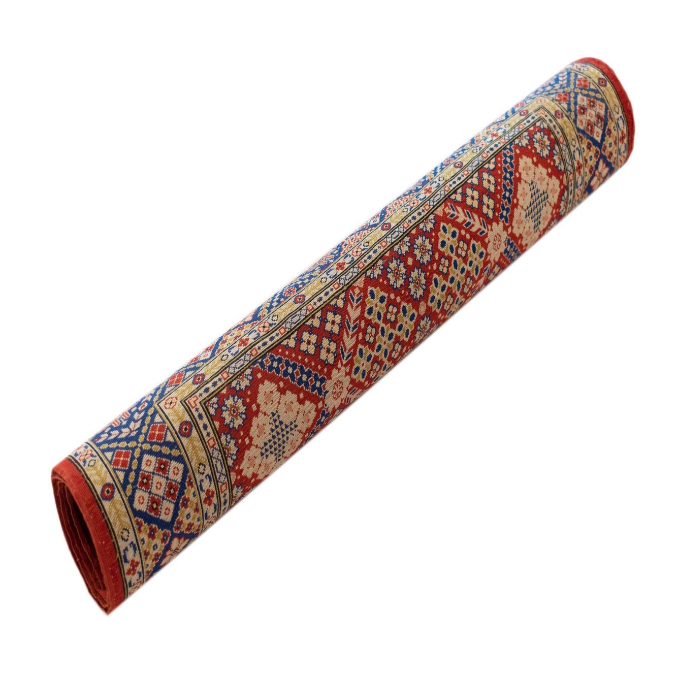 Primary color is Red. Colors in this rug include: Red, Brown, Green.
