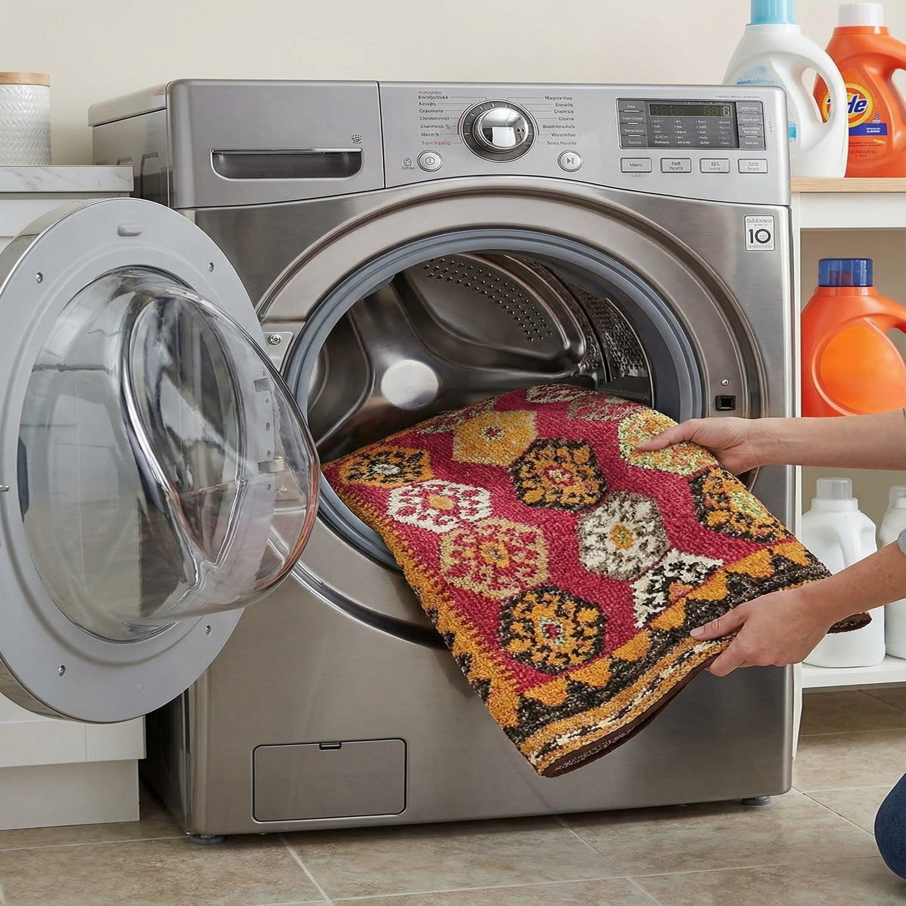 This rug works well where a focused pop of color is needed—try it in an entryway, layered at the foot of a bed, or beneath a small reading chair to anchor a vignette. Its mix of warm tones and lively pattern pairs naturally with warm wood finishes, neutral upholstery, and eclectic or transitional decor schemes; it can also bring contrast to clean, modern furnishings when you want a hint of traditional ornament.