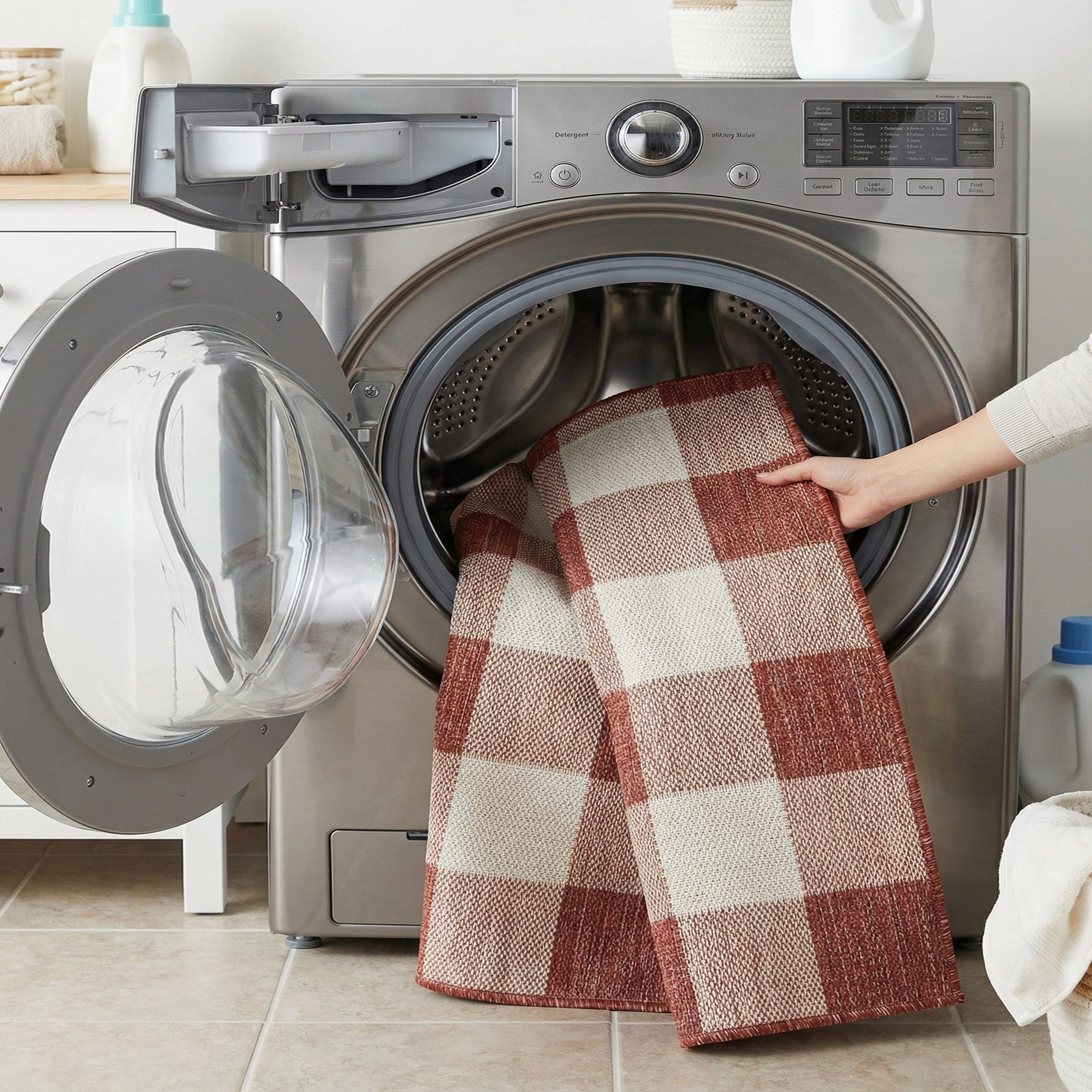 2' x 3' Washable Checkered Indoor / Outdoor Rug