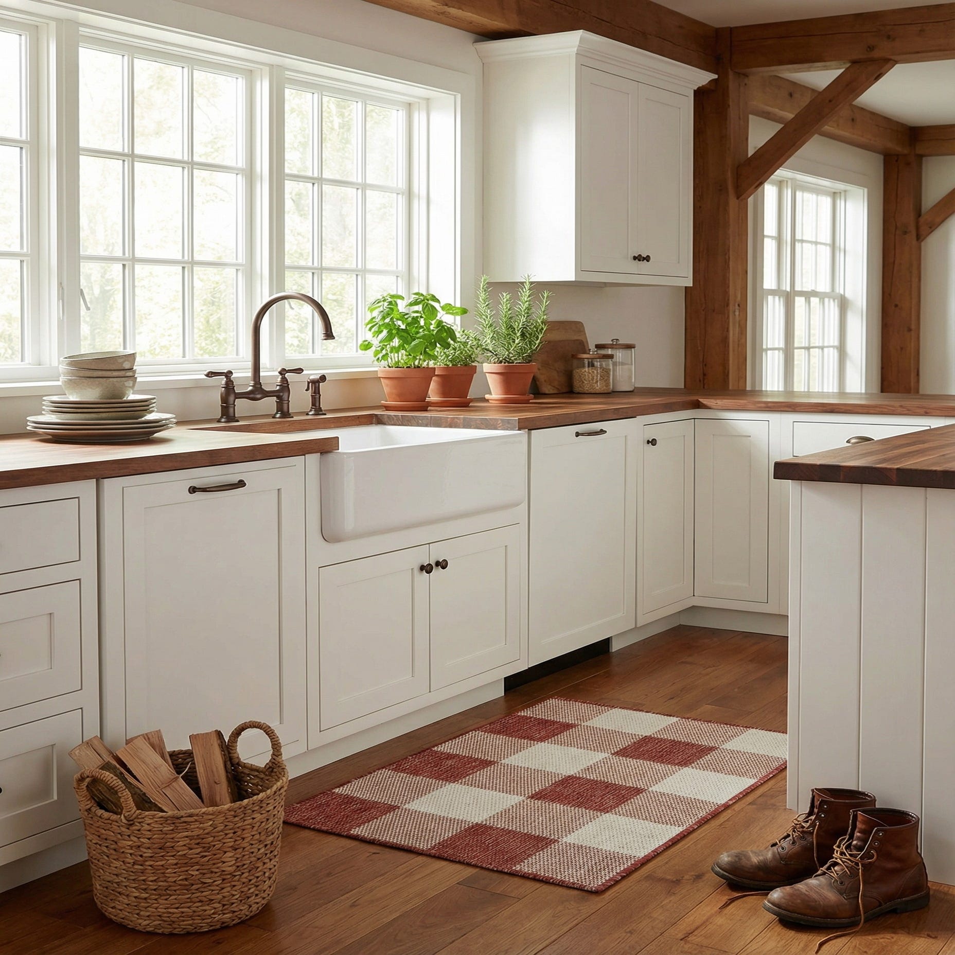 Sized for smaller zones, it works well on a covered porch, in front of an entry, or beneath a bistro table to add a focused graphic element. The red-and-ivory palette complements natural wood, wicker, and metal furnishings, and pairs nicely with neutral linens, navy accents, or distressed farmhouse pieces. Use it to anchor a compact seating area, bring color to a sunroom, or layer with a larger neutral rug to introduce pattern without overwhelming the room.