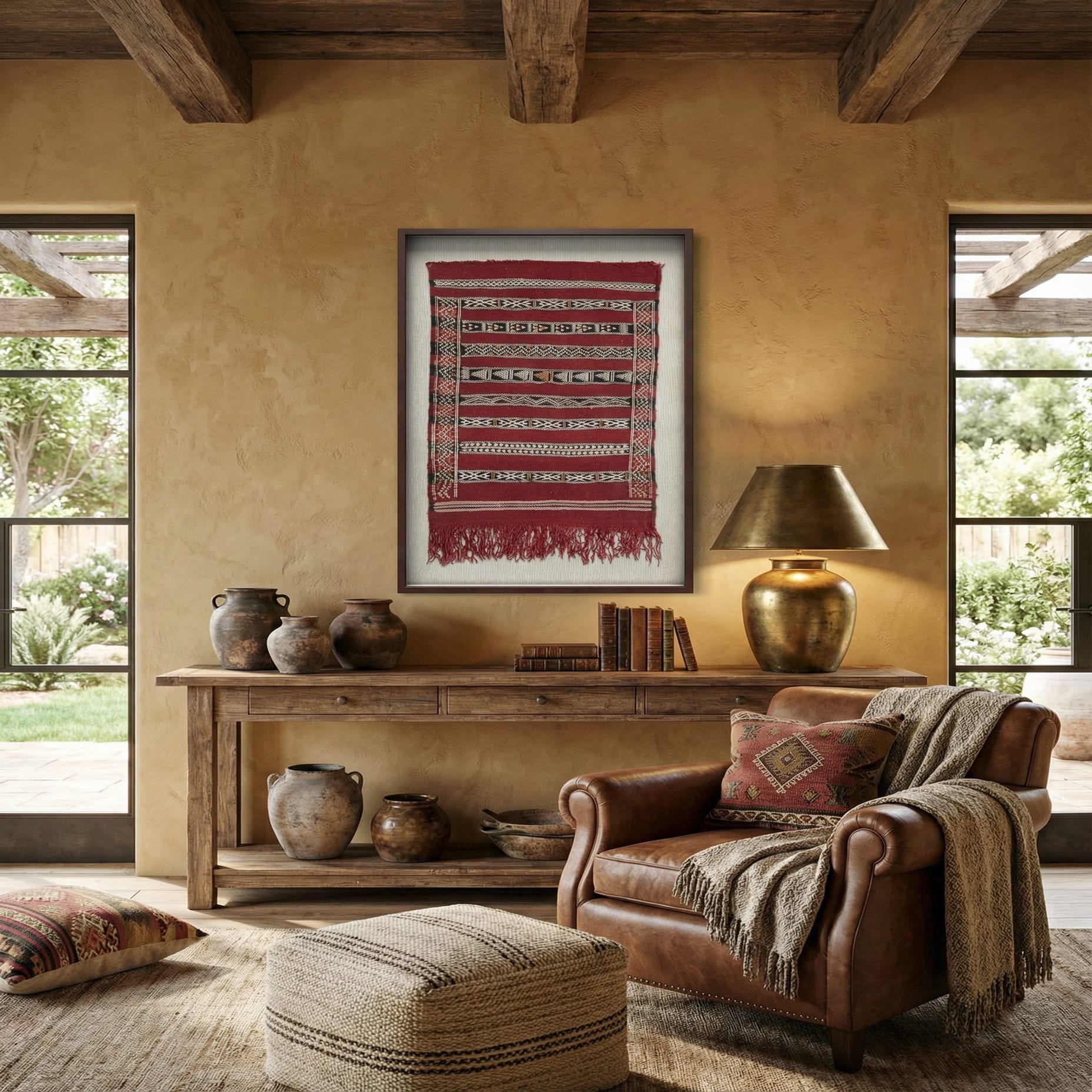 Primary color is Red. Colors in this rug include: Red, Ivory, Orange, Black.