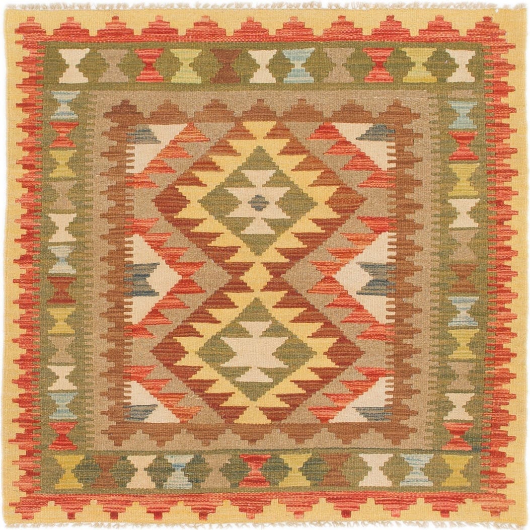 3' x 3' 9 Hand Woven Kilim Maymana Wool Square Rug