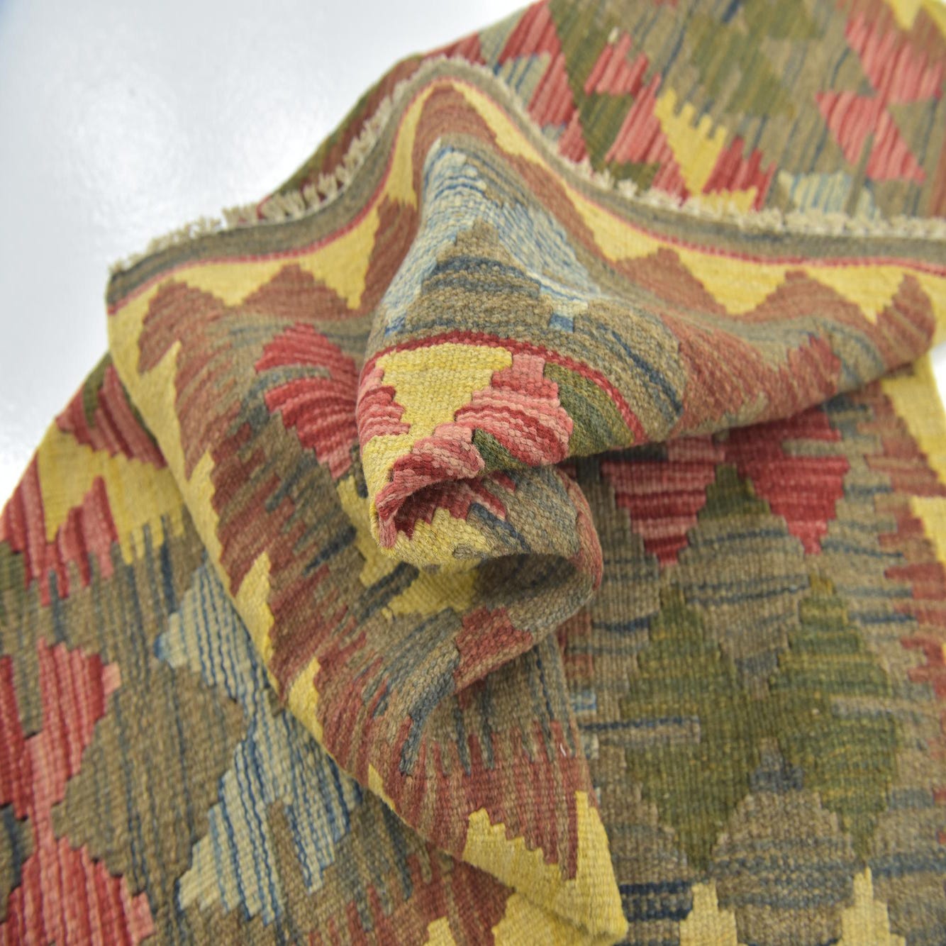 Detail image of  3' 2 x 3' 7  Hand Woven Kilim Maymana Wool Square Rug