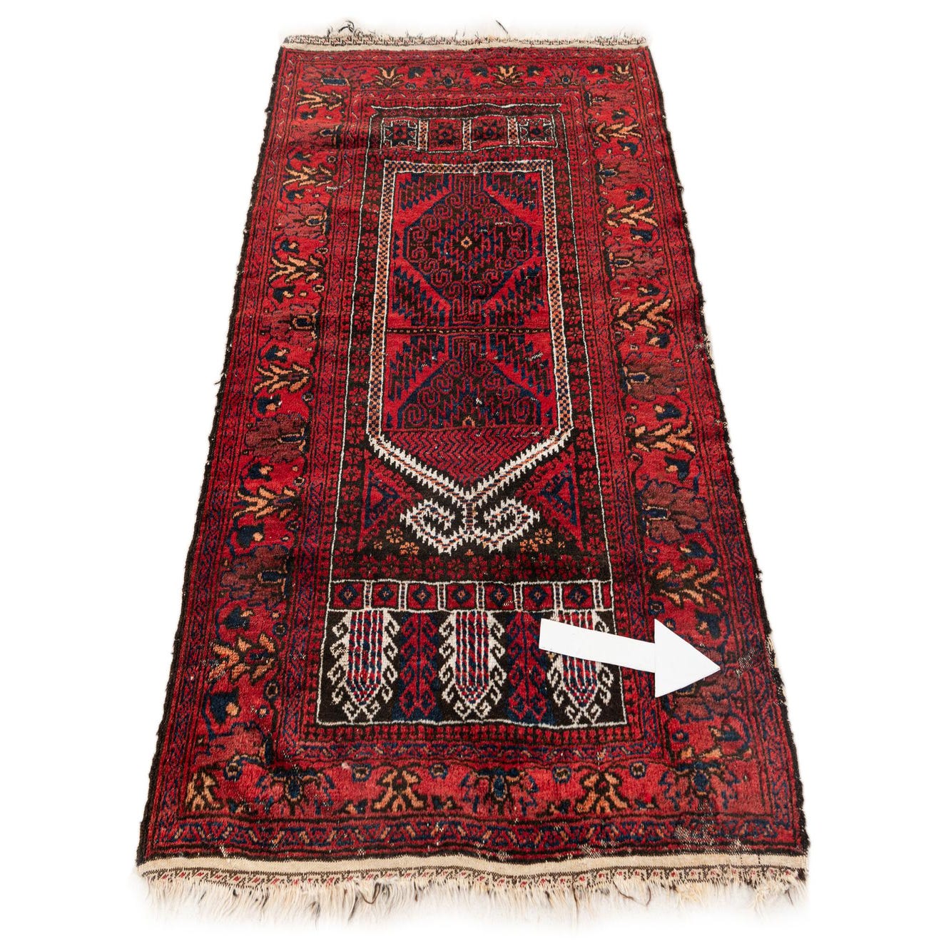 In Very Good condition, with Low Pile, Missing Fringe, Small Spot Damage, Spot Stain, Hole. Further details can be seen in the pictures