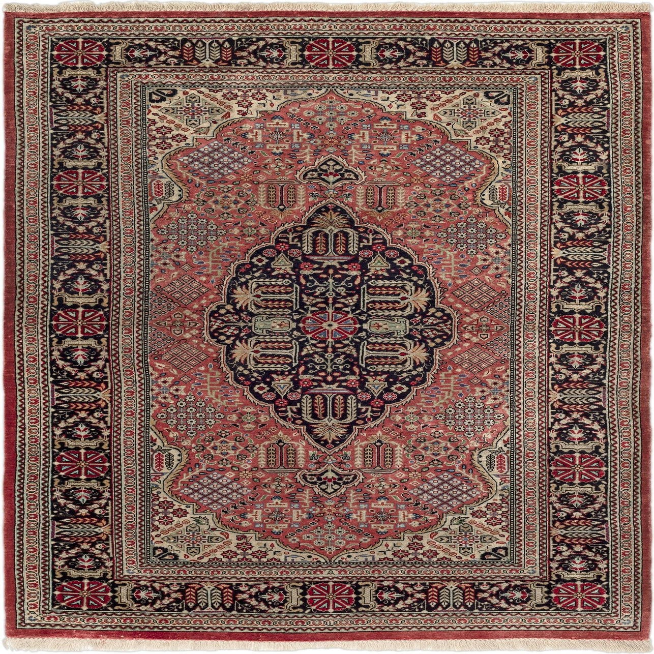 Ideal for anchoring a compact seating area or a pair of accent chairs and a small coffee table, this rug also works well at the foot of a bed or in an entryway where its pattern can be appreciated up close. It pairs naturally with warm wood furniture, brass or aged-metal accents, and both traditional and transitional interiors that benefit from a strong, warm centerpiece.