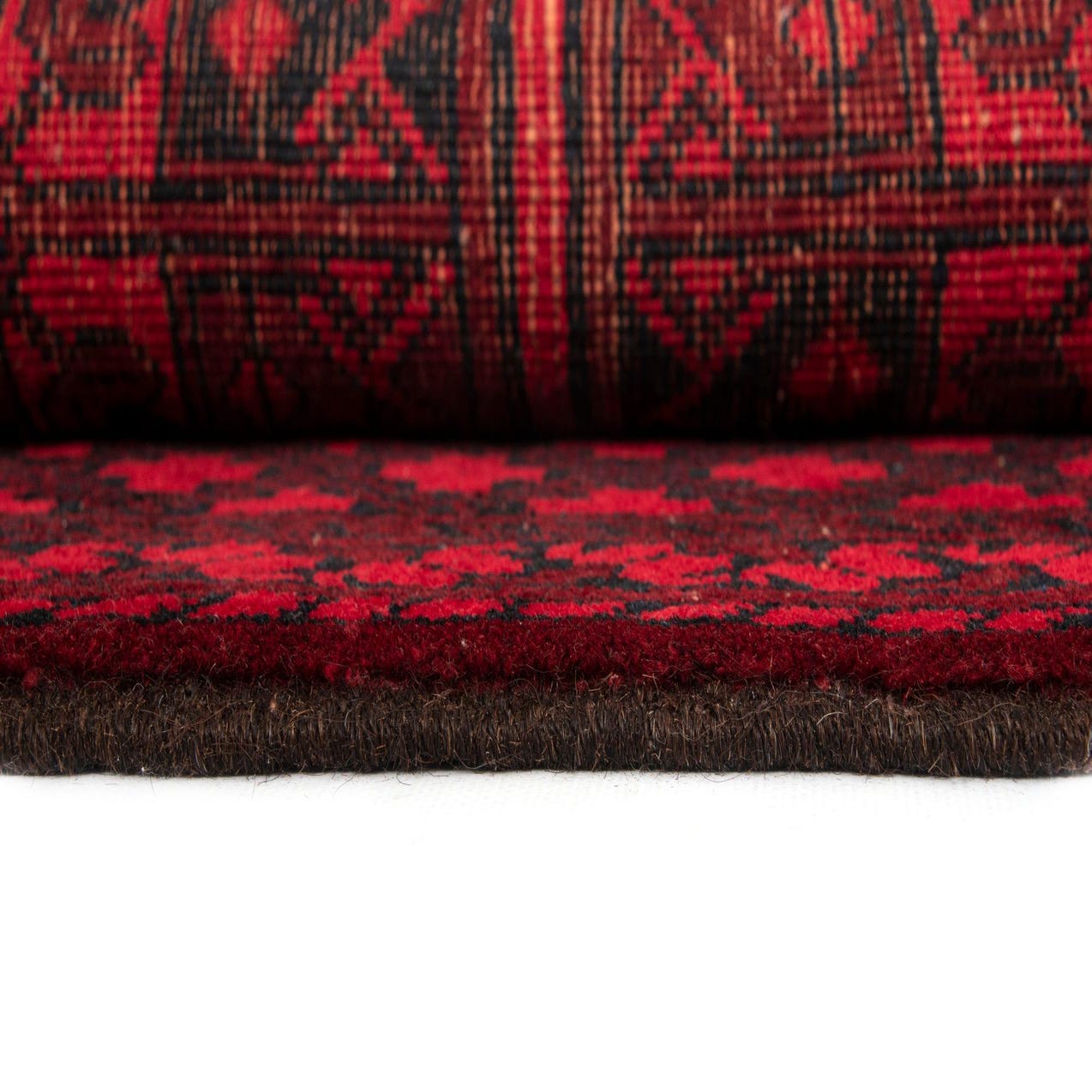 Primary color is Red. Colors in this rug include: Red, Red, Black.