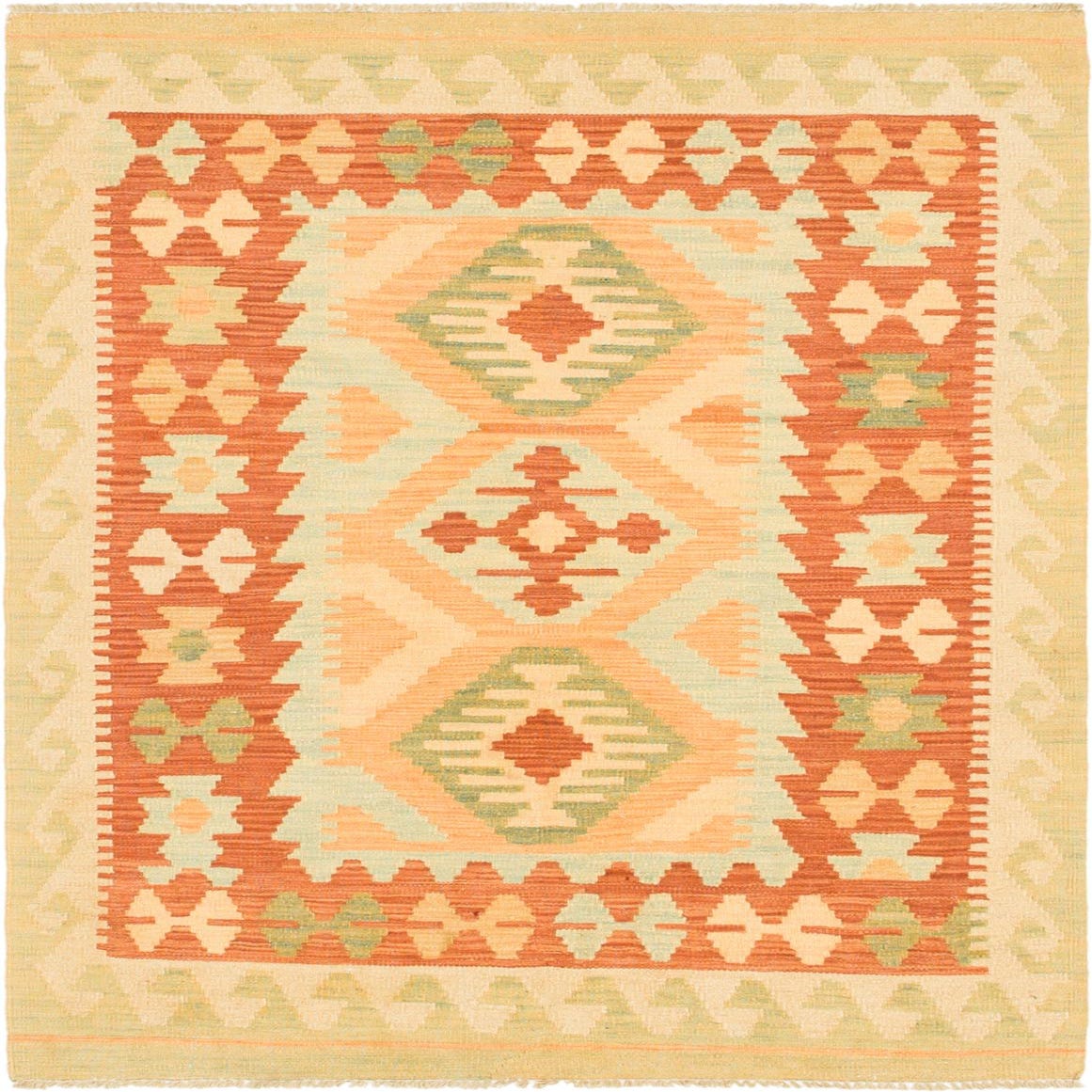 3' 4 x 4' 10 Hand Woven Kilim Waziri Wool Rug