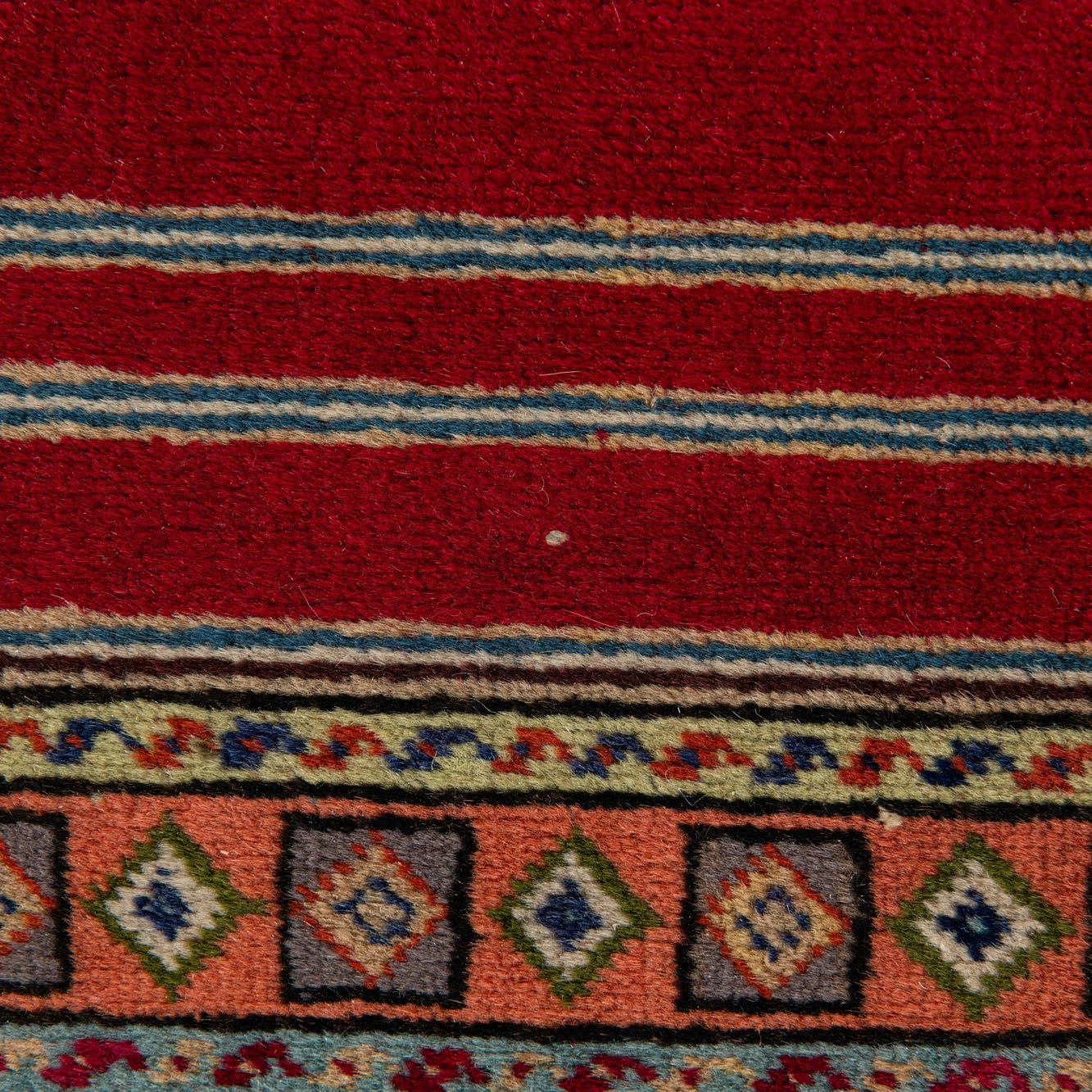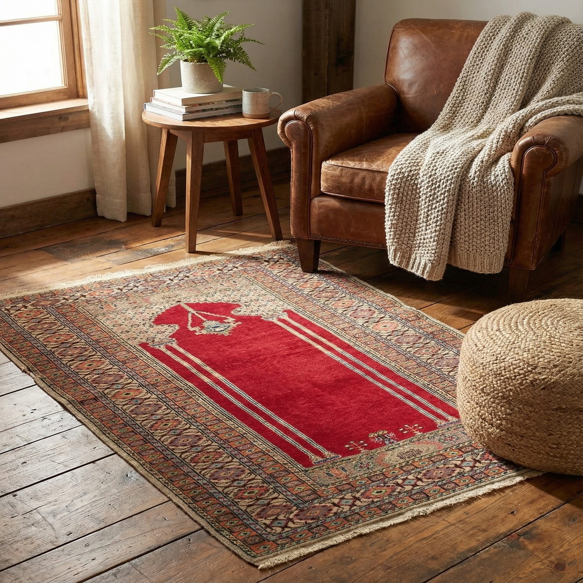 This rug works well as an entryway anchor, a bedside accent, or layered over hardwood in a reading nook or living room to bring warmth and pattern to a compact area. Pair it with warm wood tones and leather furnishings for a traditional look, or balance the rich red with cream upholstery and brushed brass lighting for a refined transitional scheme. Deep navy or forest-green accents echo the rug’s colored details, while live plants and natural textures will soften the overall palette.