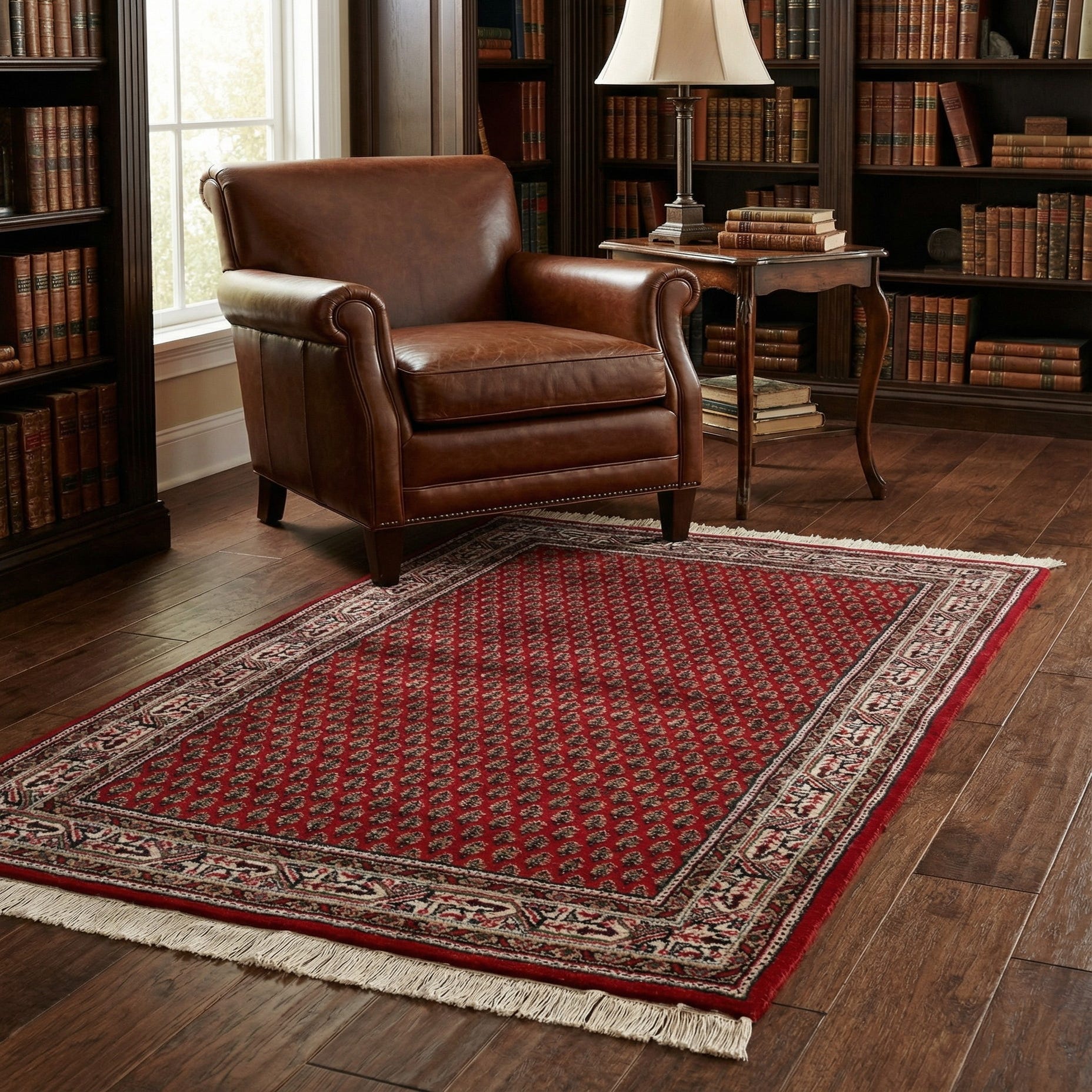 • Dark mahogany wood bookshelf