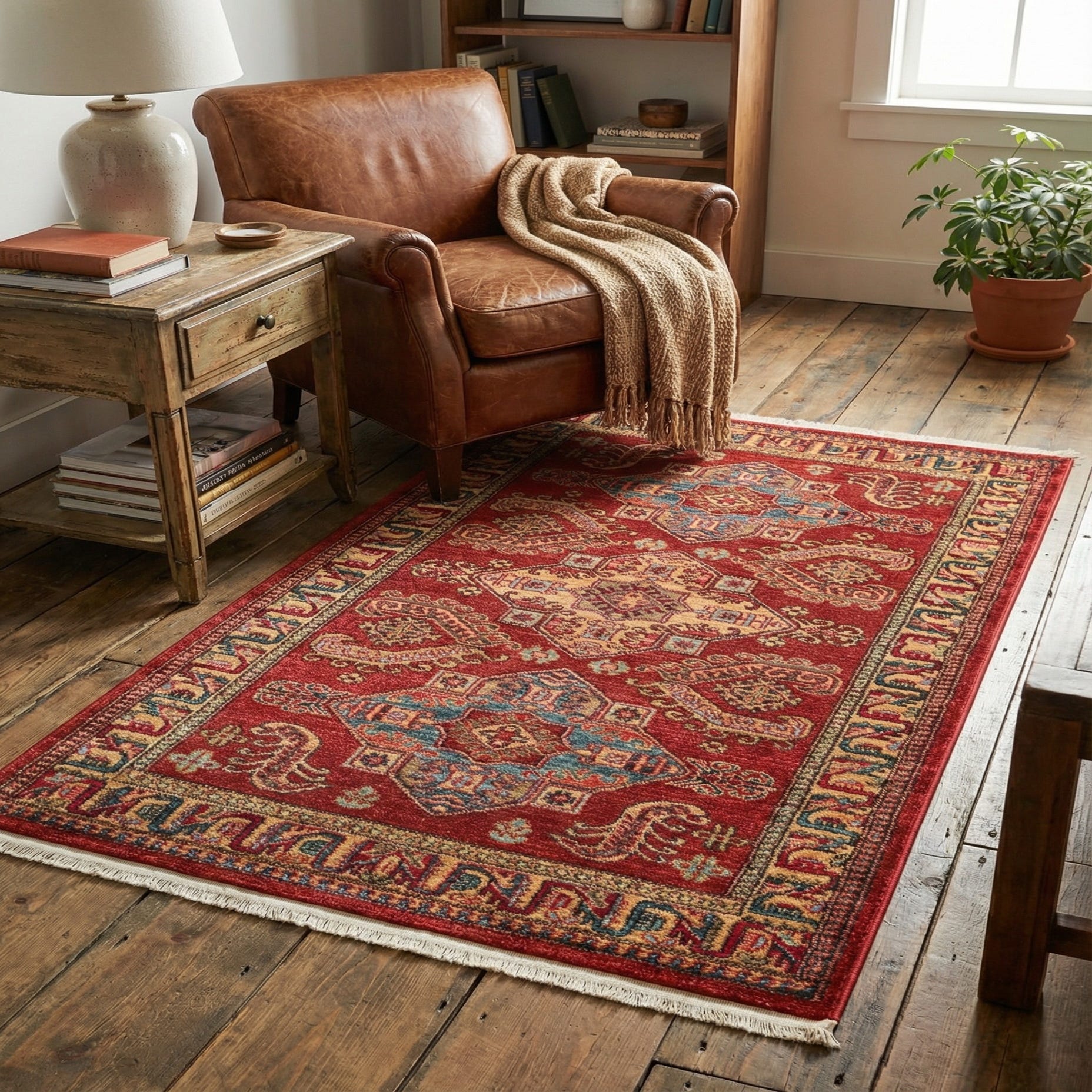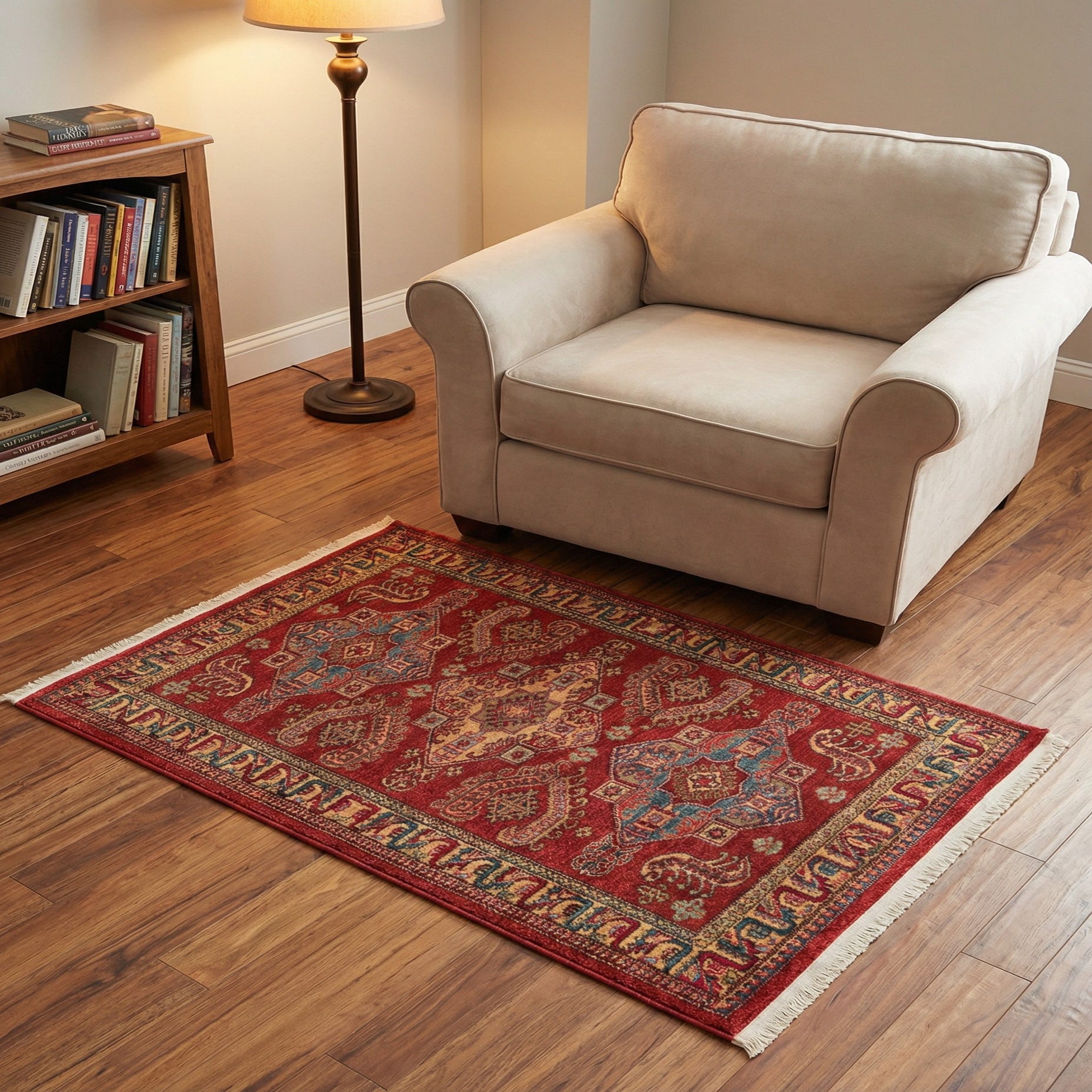 Machine-made of 100% polypropylene, this rug brings traditional character to everyday spaces. Place it in a narrow hallway or entry to introduce color and pattern, layer it under a coffee table in a living room with warm wood tones and leather seating, or pair it with navy or beige upholstery and brass accents for a cohesive, transitional look. It also integrates well into eclectic arrangements when mixed with textured throws and patterned pillows.