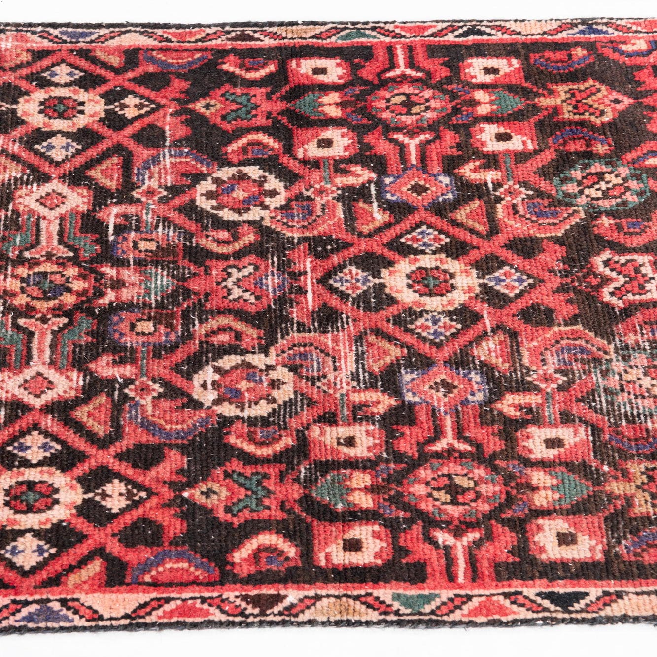 A 3x5 rectangular Ultra Vintage rug featuring a distressed Persian pattern in various shades of red, black, and blue.