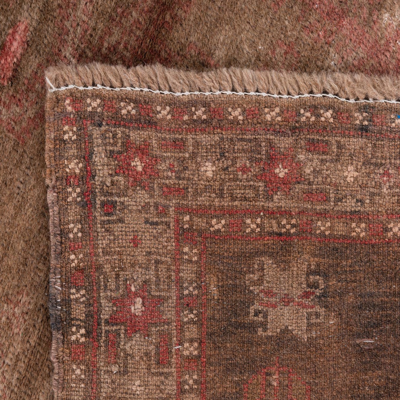 Primary color is Red. Colors in this rug include: Red, Brown.
