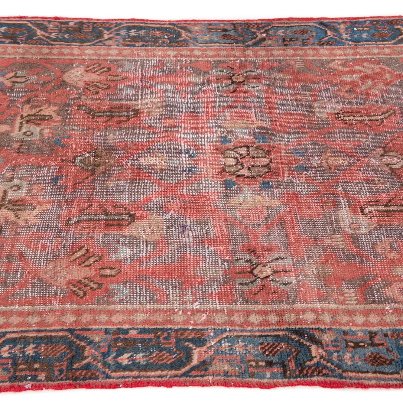 This Persian Ultra Vintage rug is an antique Persian Rug that has been washed, over-dyed, and then shaved down to a low pile. Look at the detail pictures to fully appreciate the uniqueness of this piece.