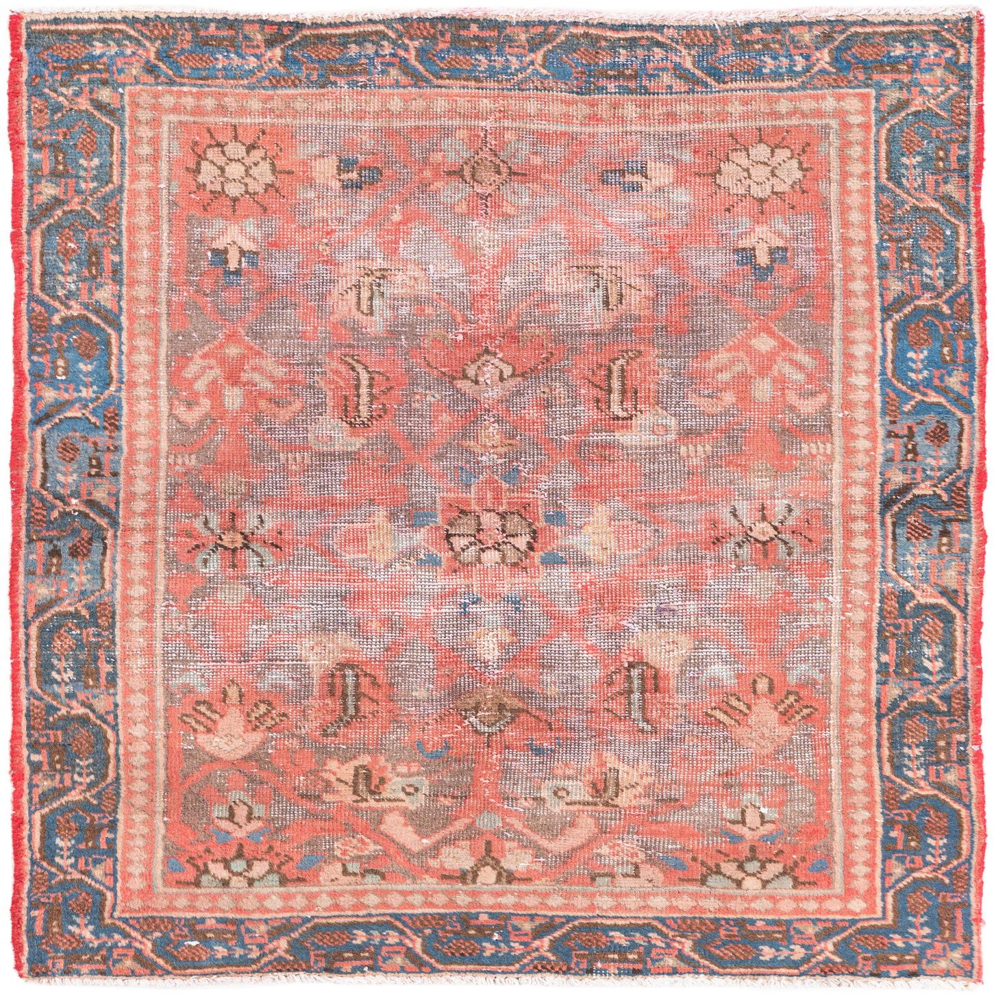 A 3x5 rectangular Ultra Vintage Persian rug with a faded red field and intricate blue and brown border.
