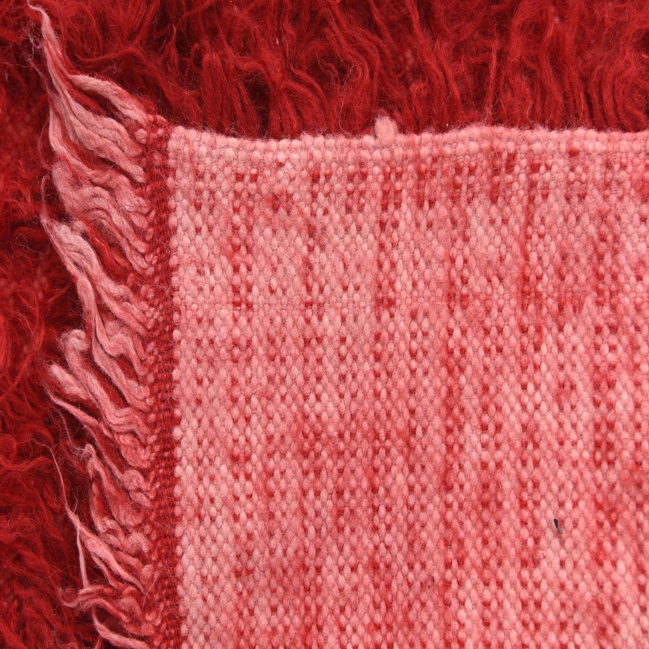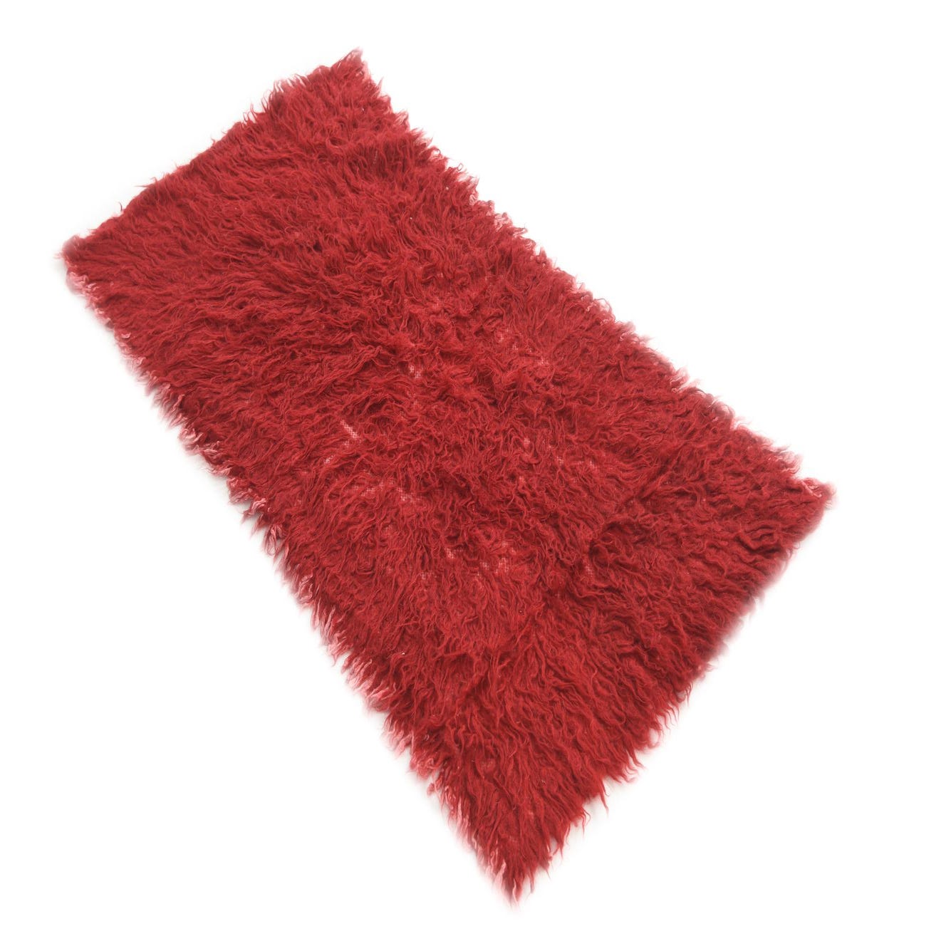 A vibrant red 4 ft runner rug with a thick, shaggy pile and visible hand-knotted texture, ideal for hallways.